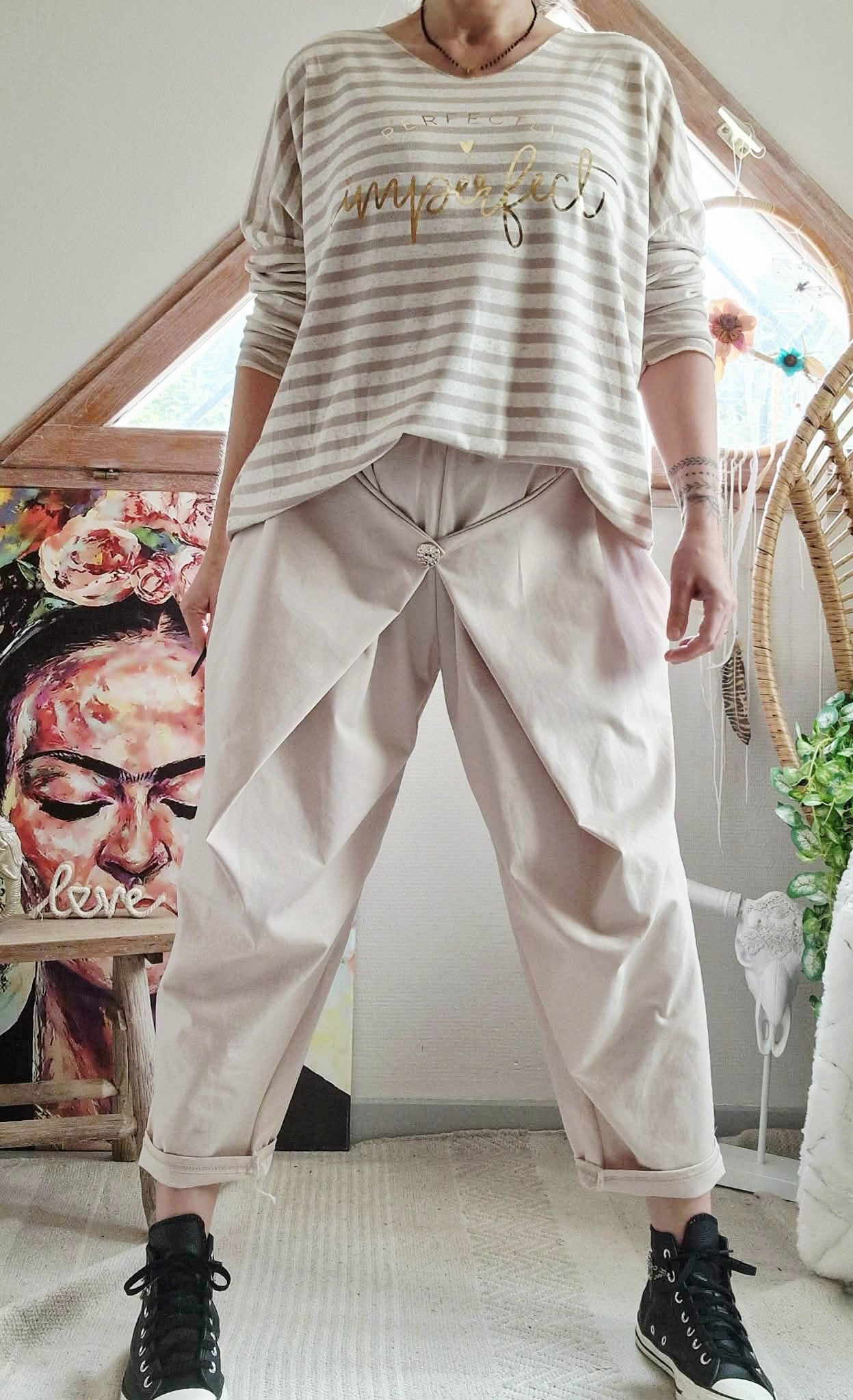 Haut oversize rayures beiges