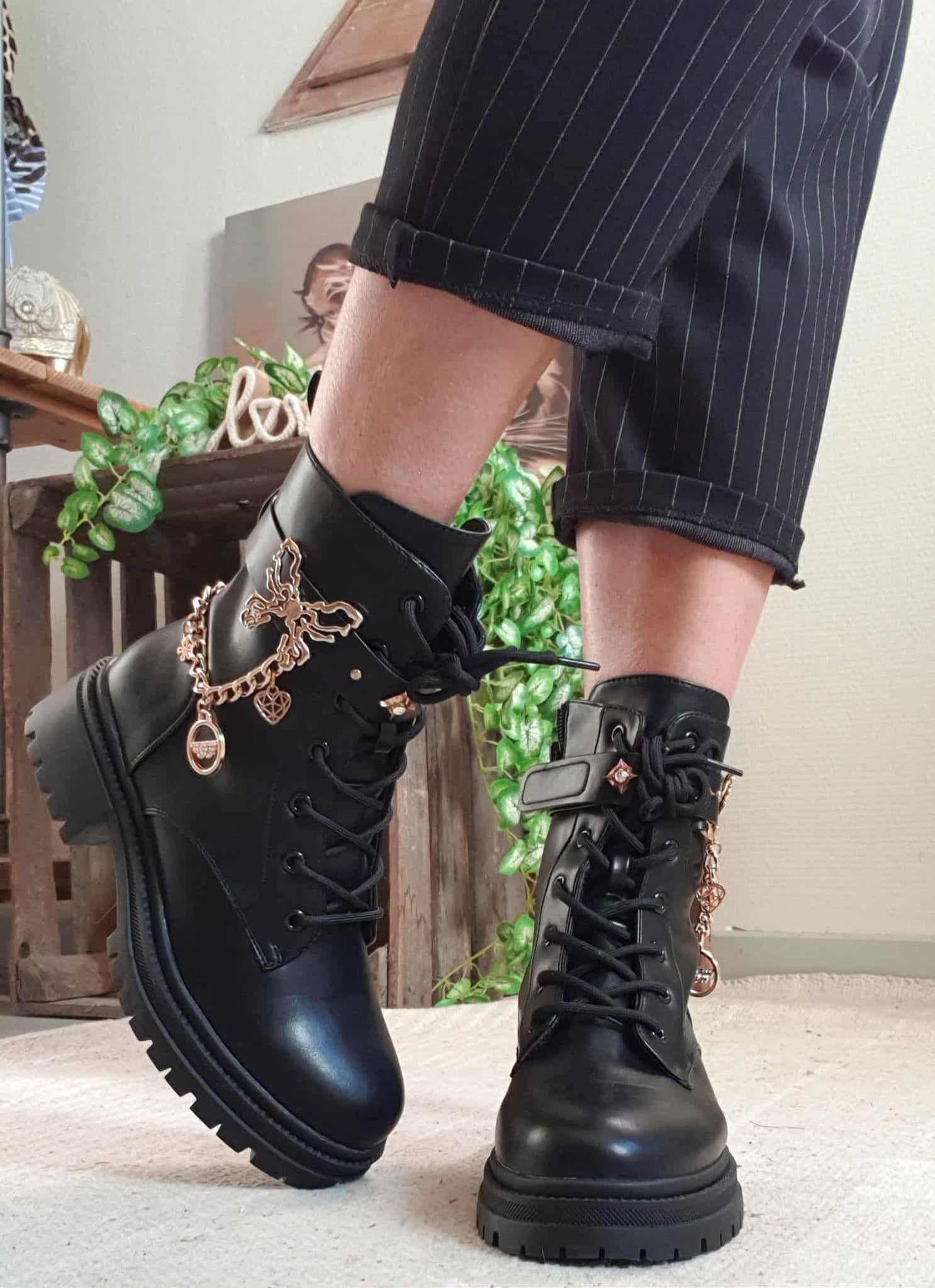 Boots Butterfly fantaisie noir , fermeture éclair sur le côté.