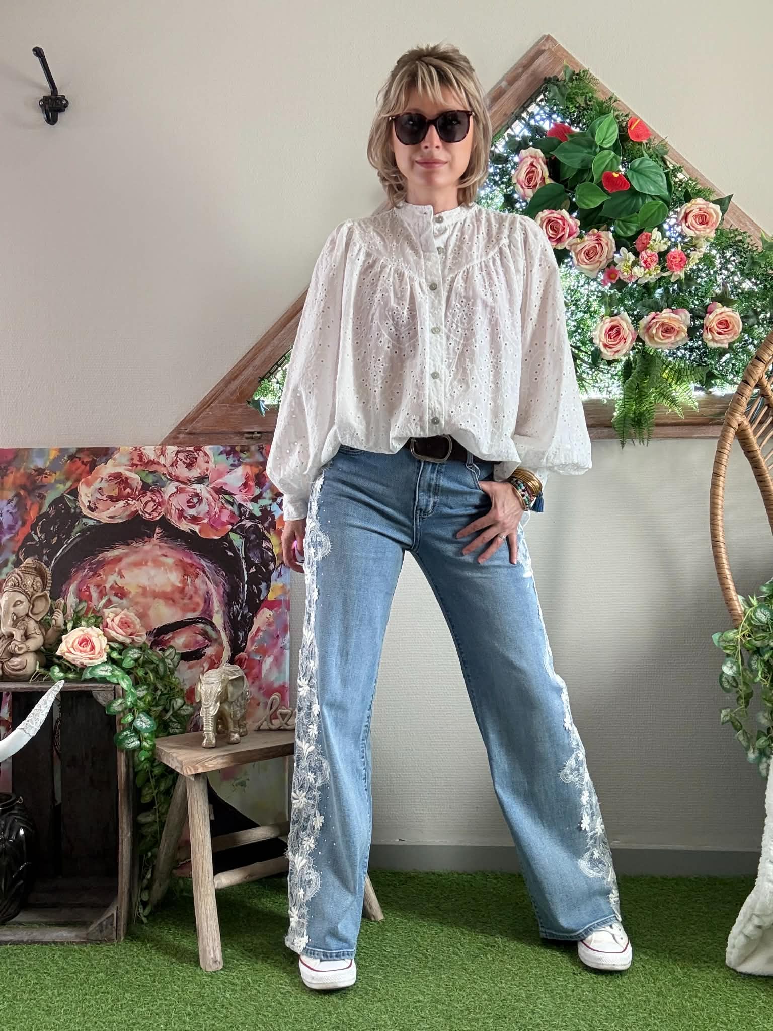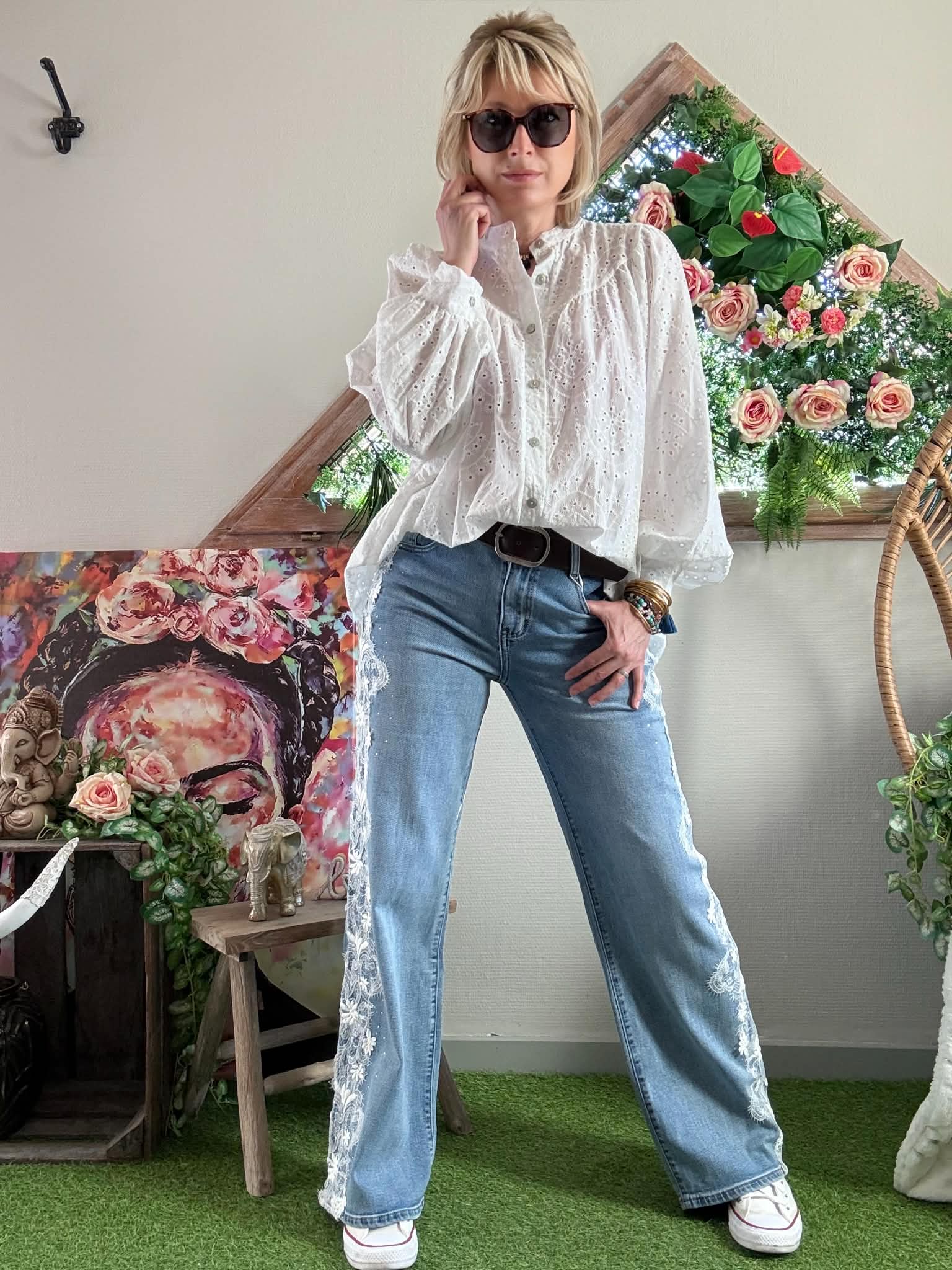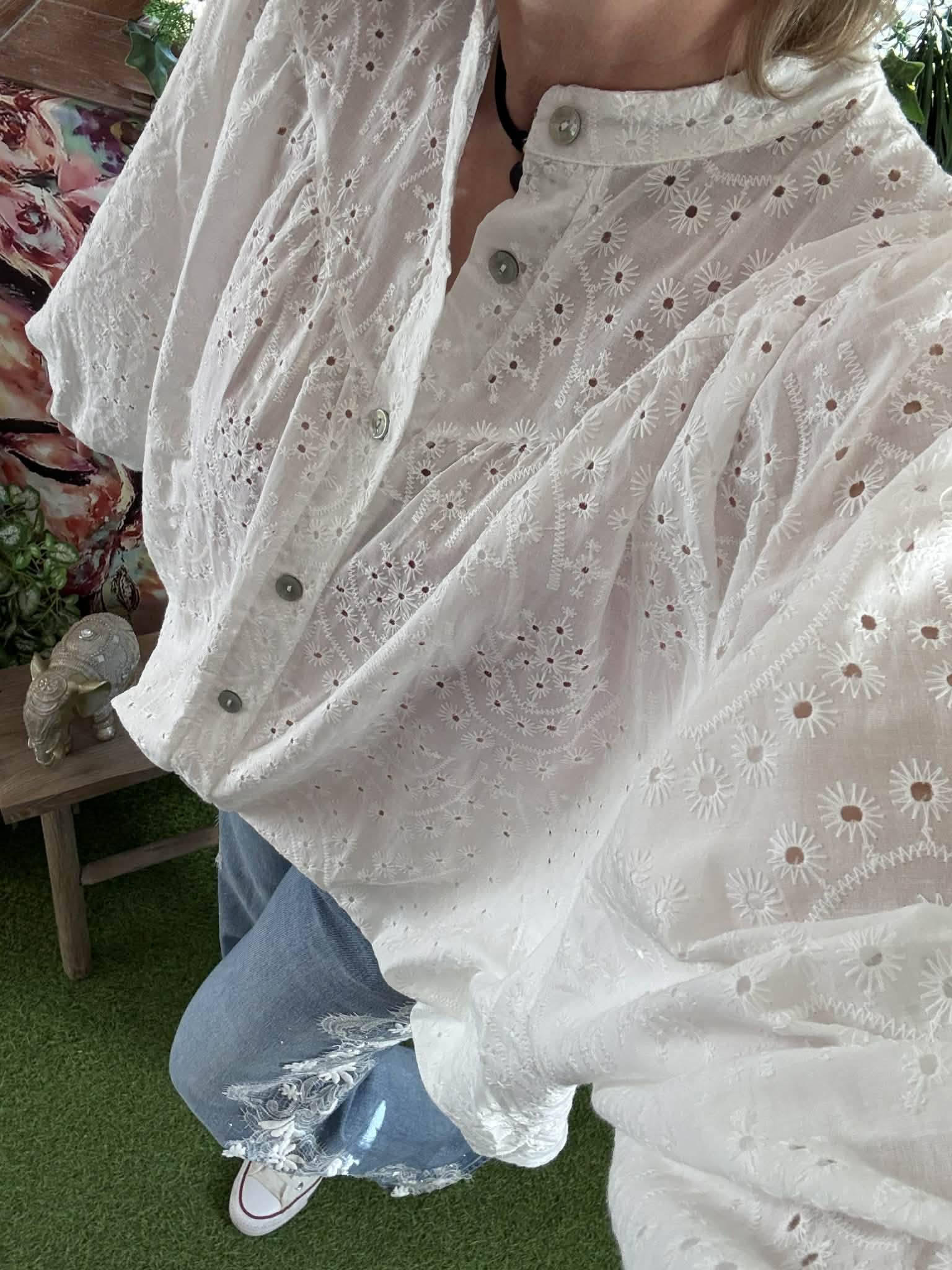 Magnifique chemise Margaret en broderie anglaise,  couleur blanche.