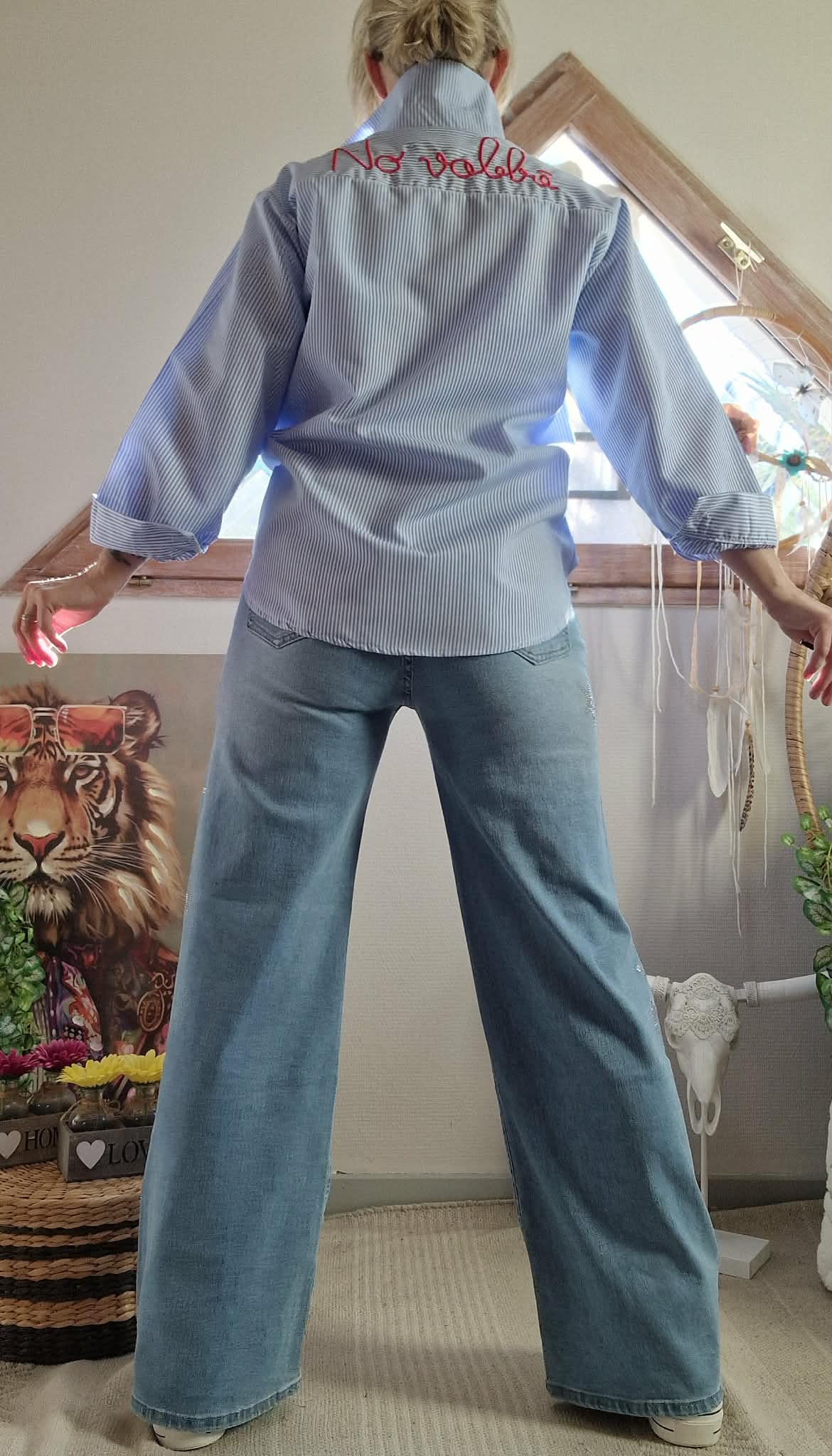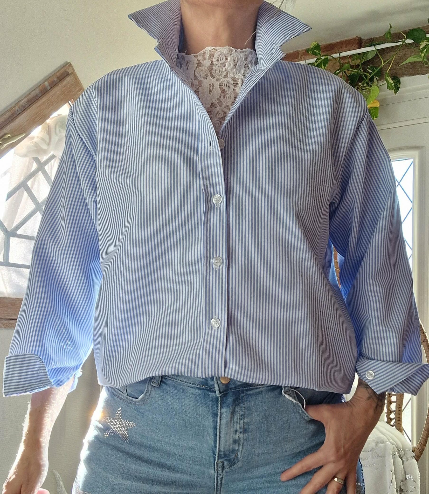 Chemise rayures bleu ciel .