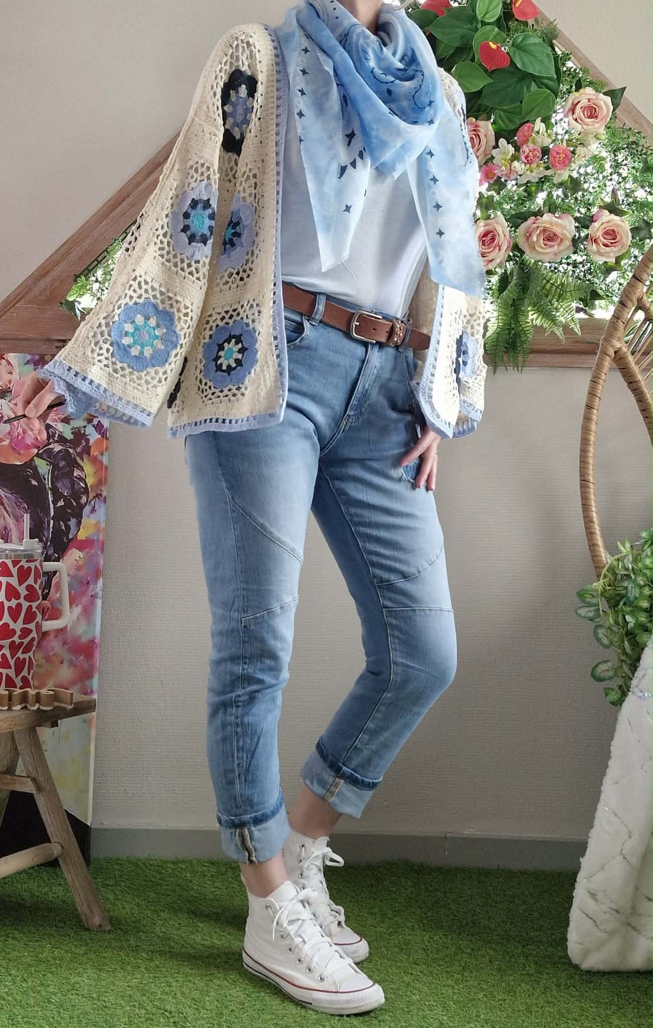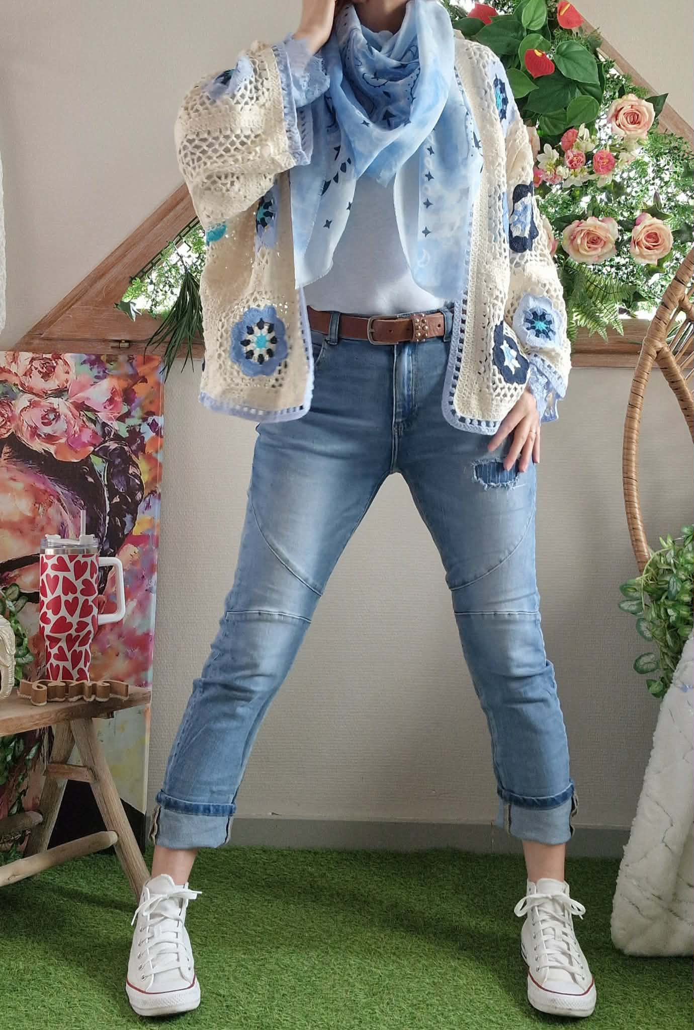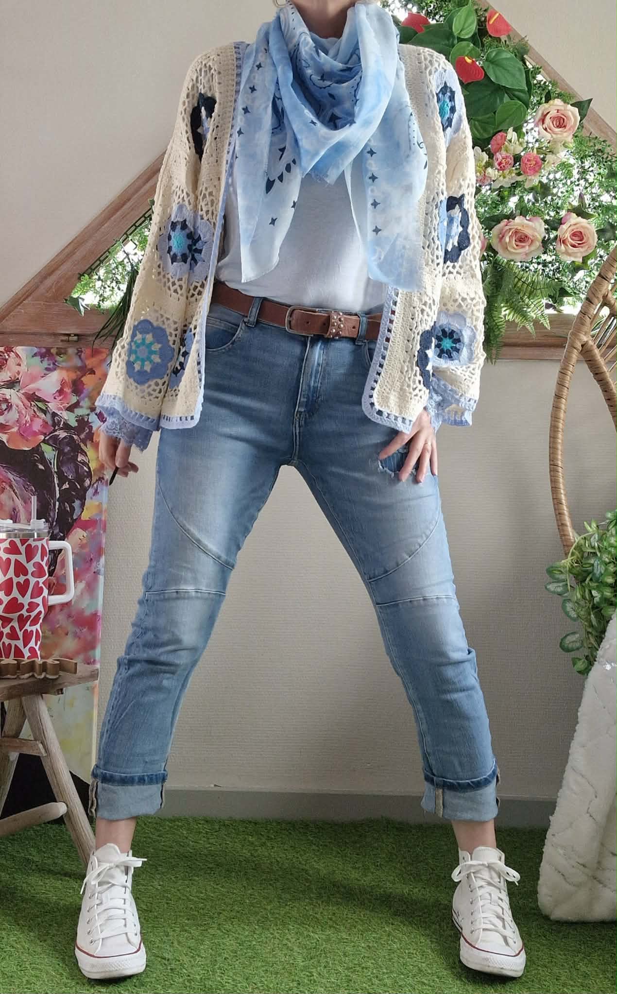 Gilet crochet bleu ciel