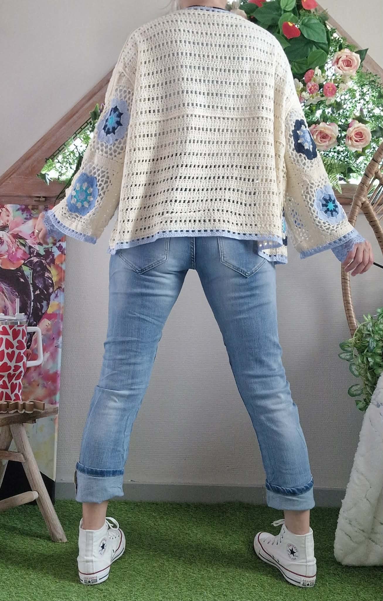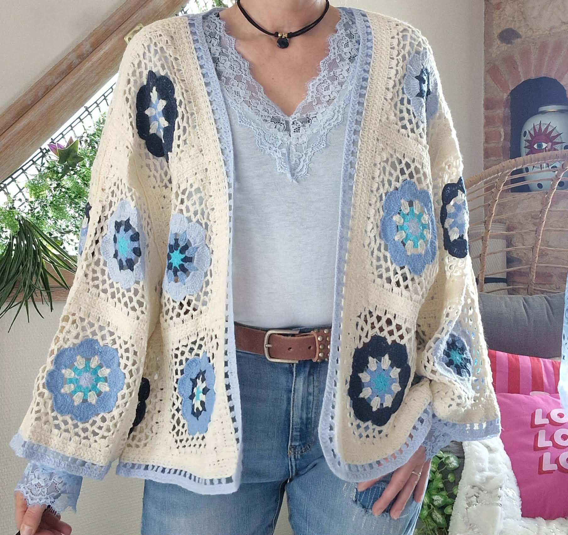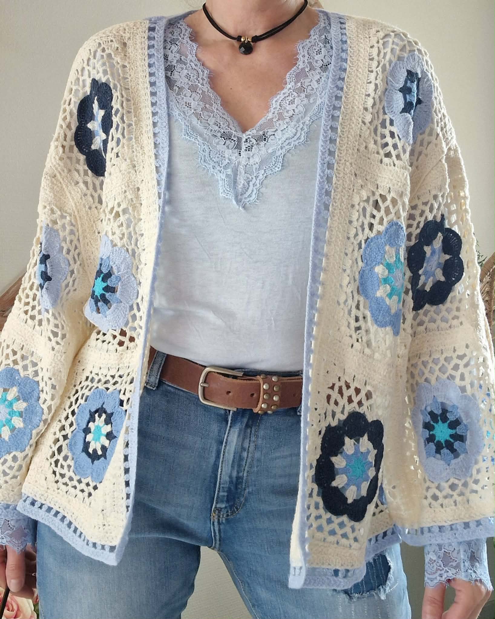 Gilet crochet beige/bleu ( ne se ferme pas )