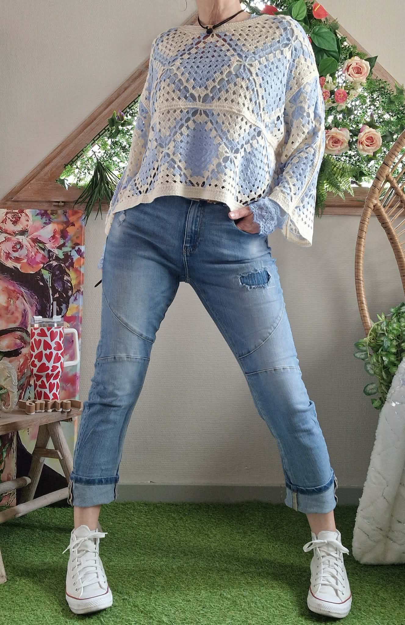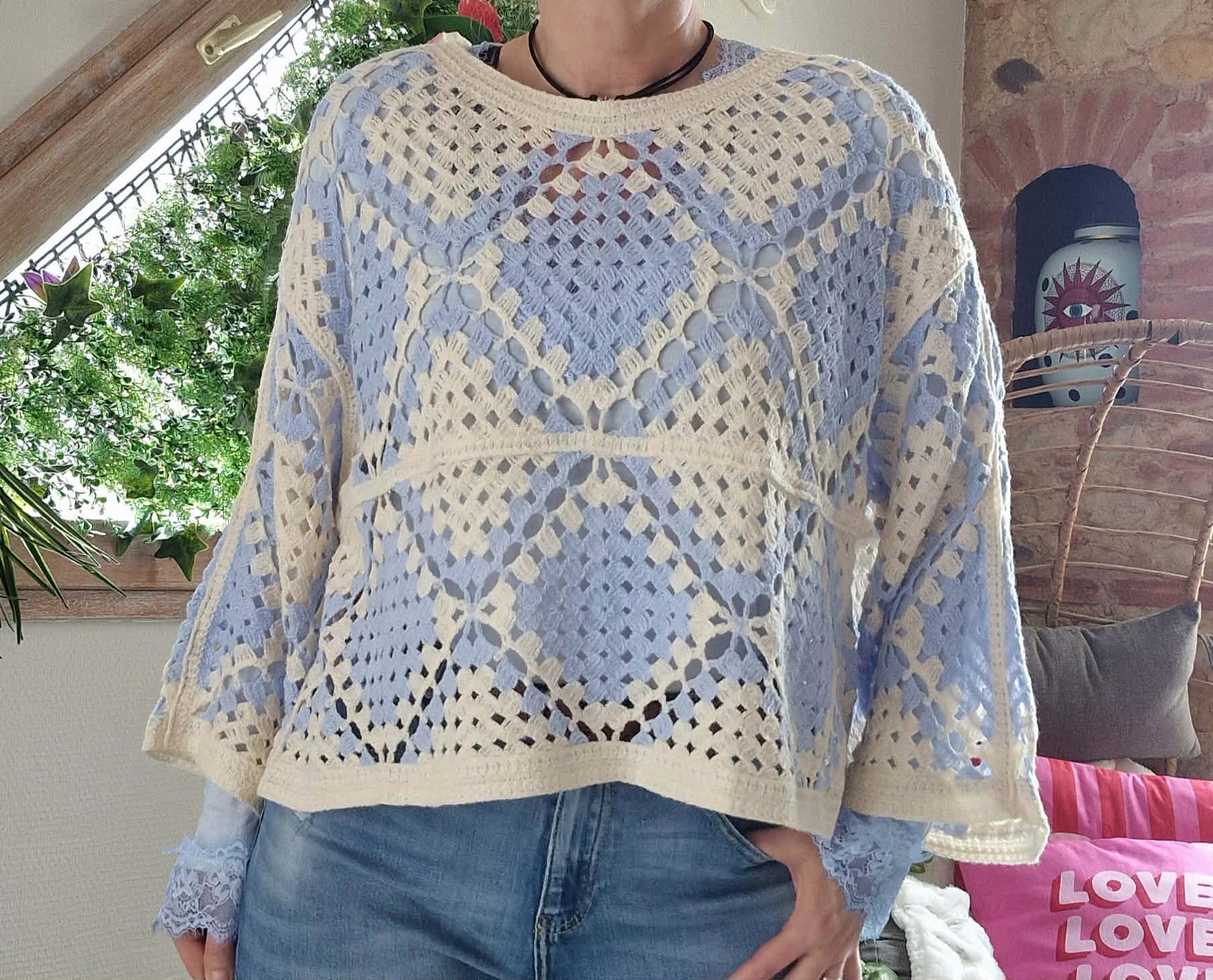 Haut crochet bleu ciel