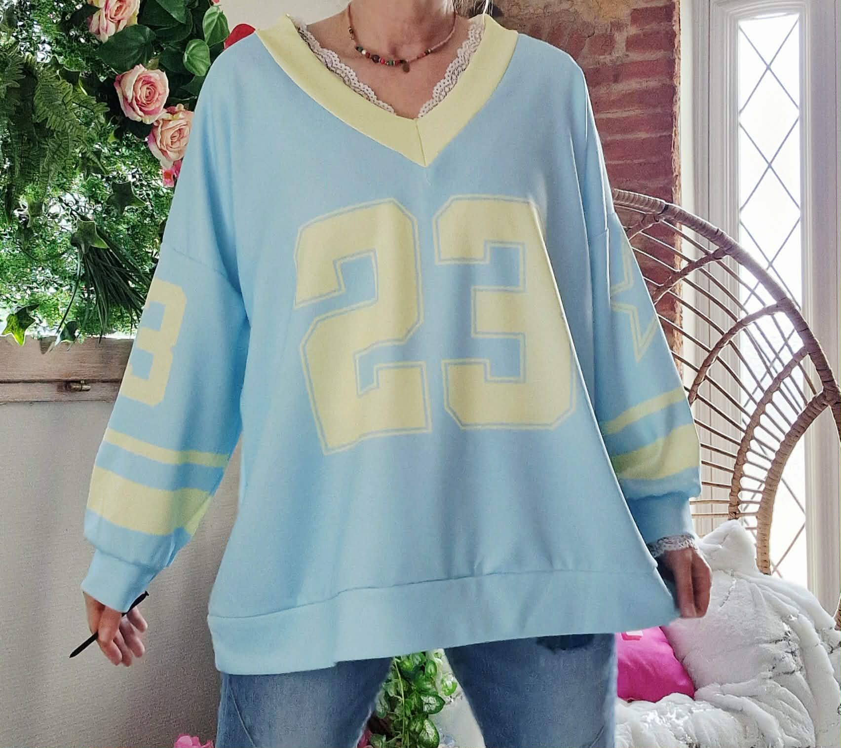 Haut oversize 23 bleu ciel