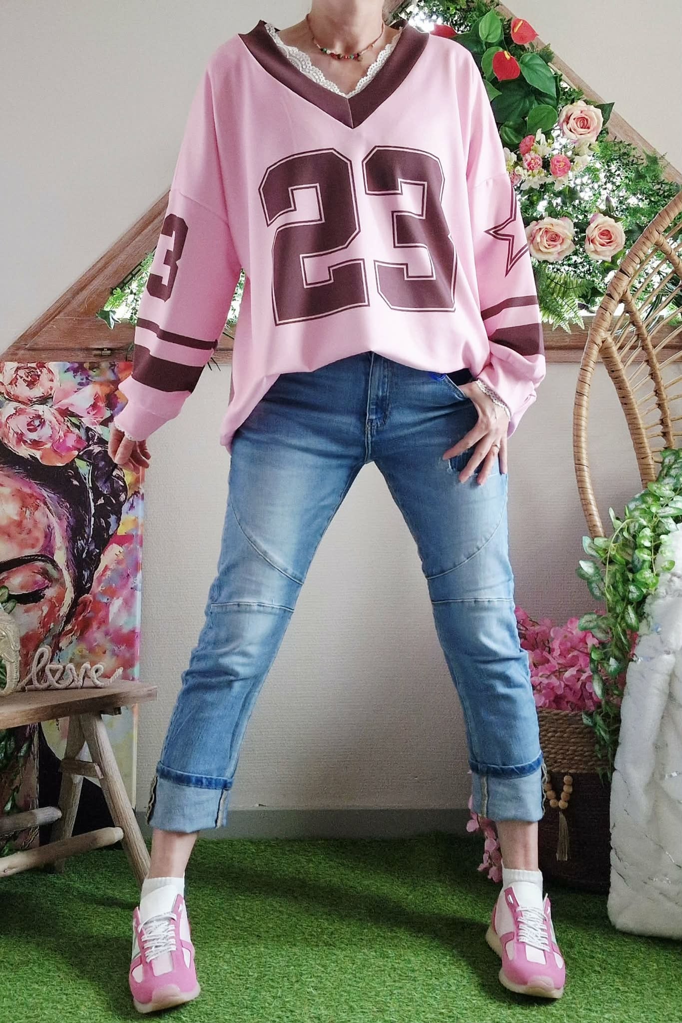 Matière entre le sweat et le tee-shirt, extensible 95% polyester et 5% elasthan.