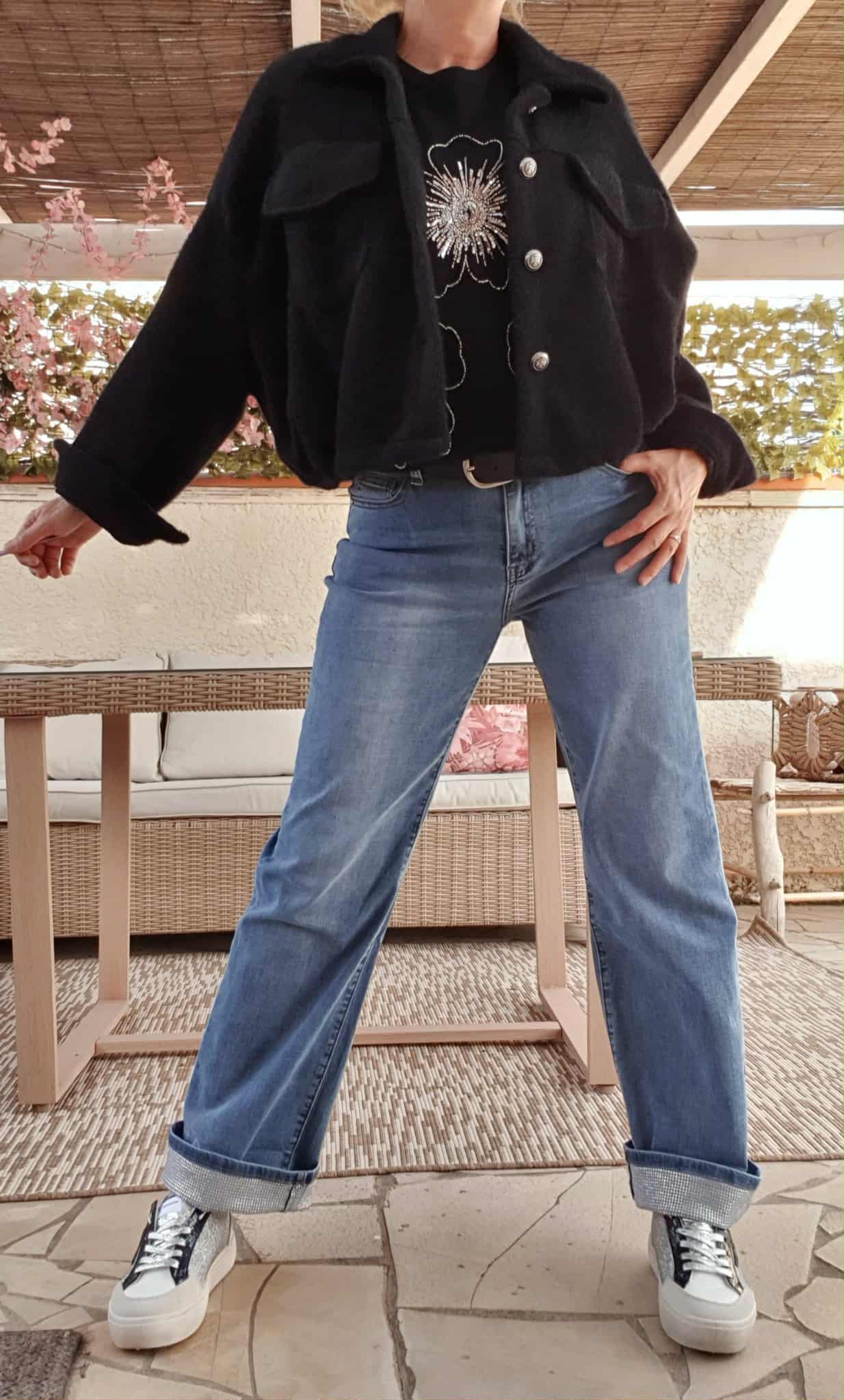 Magnifique Jeans Revers Strass .