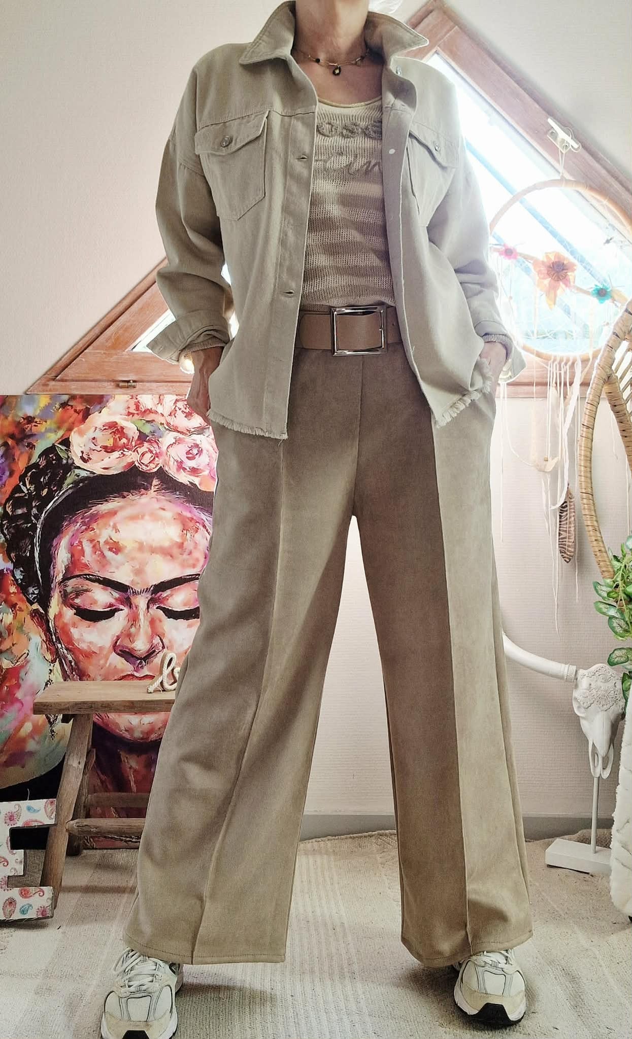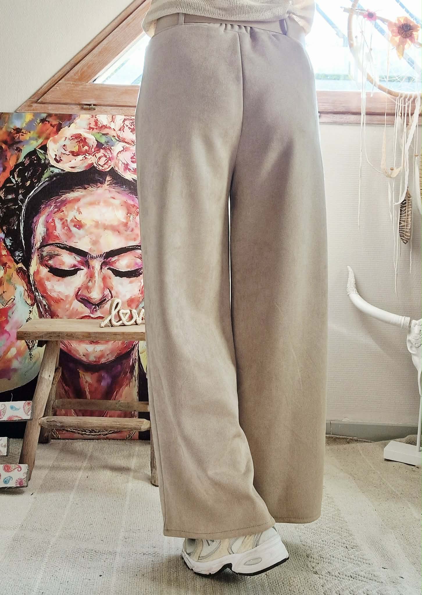 Magnifique Pantalon avec ceinture Noa couleur beige foncé.