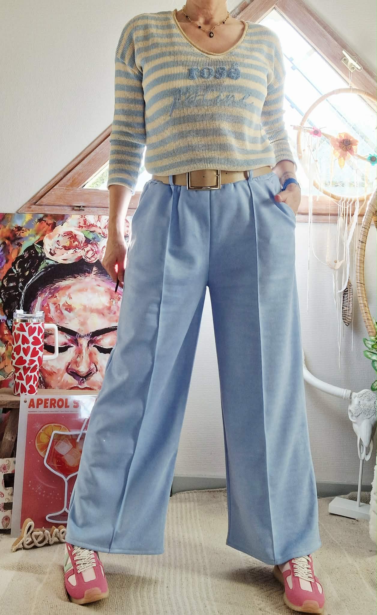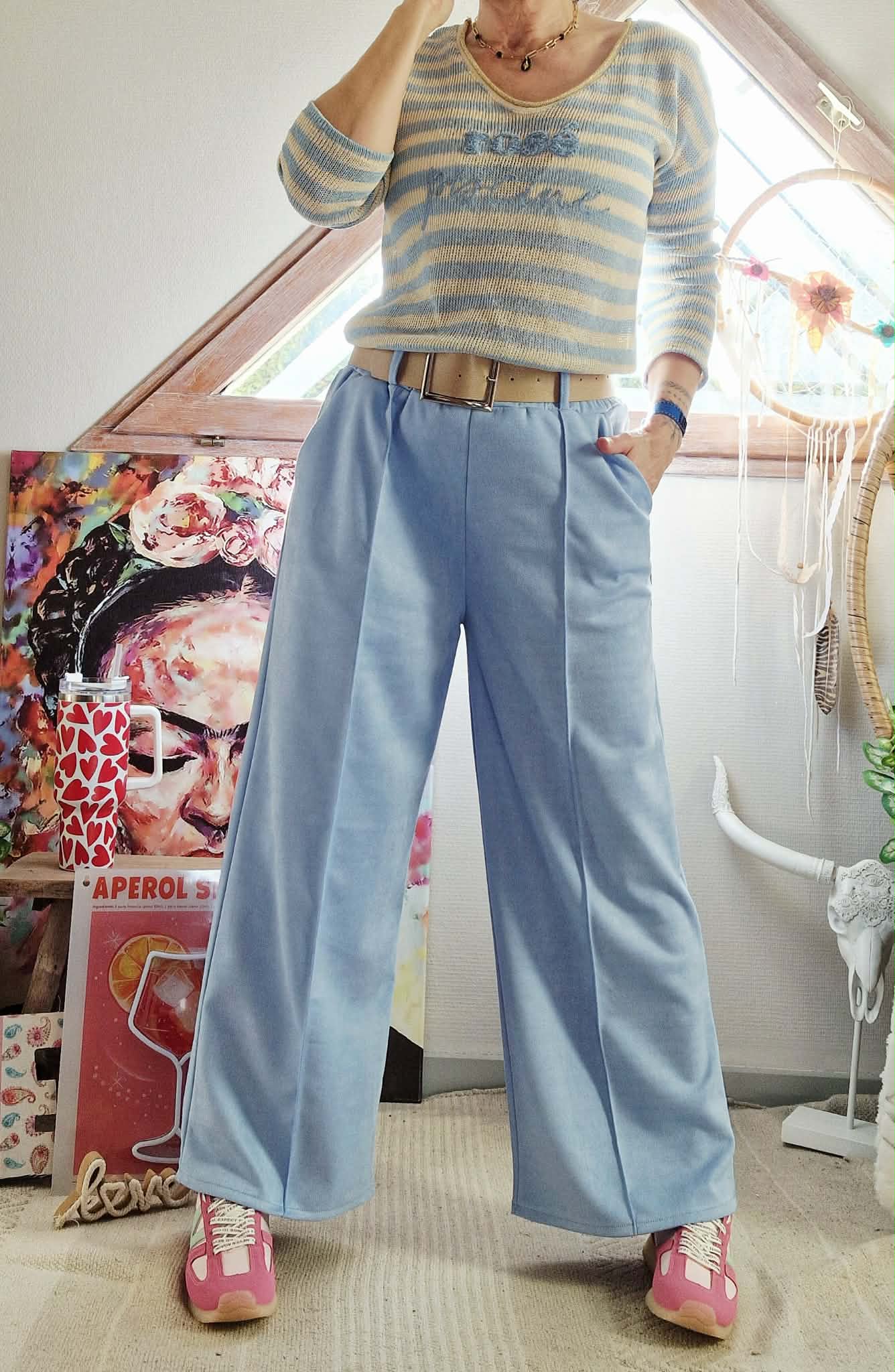 Pantalon avec ceinture Noa bleu ciel