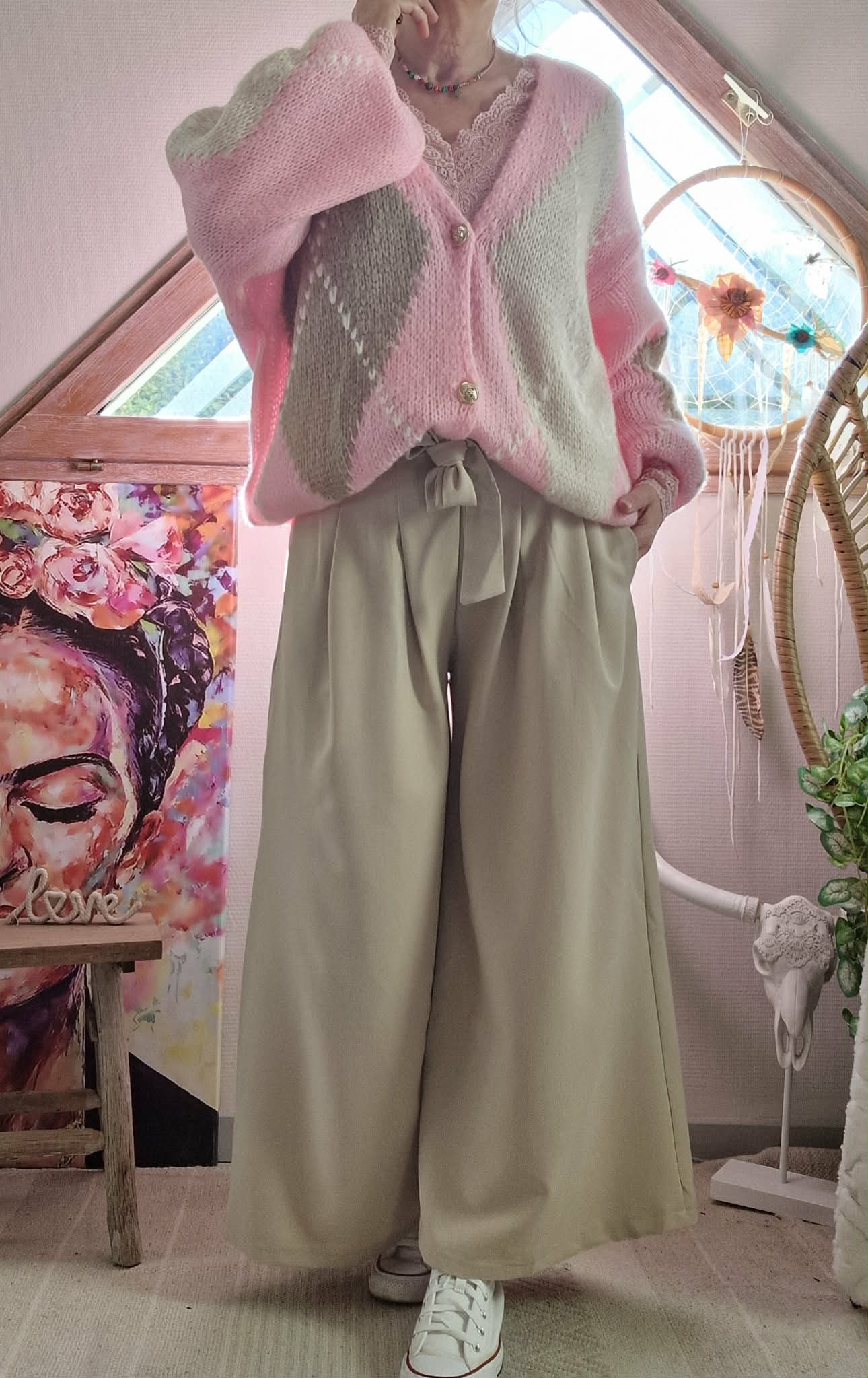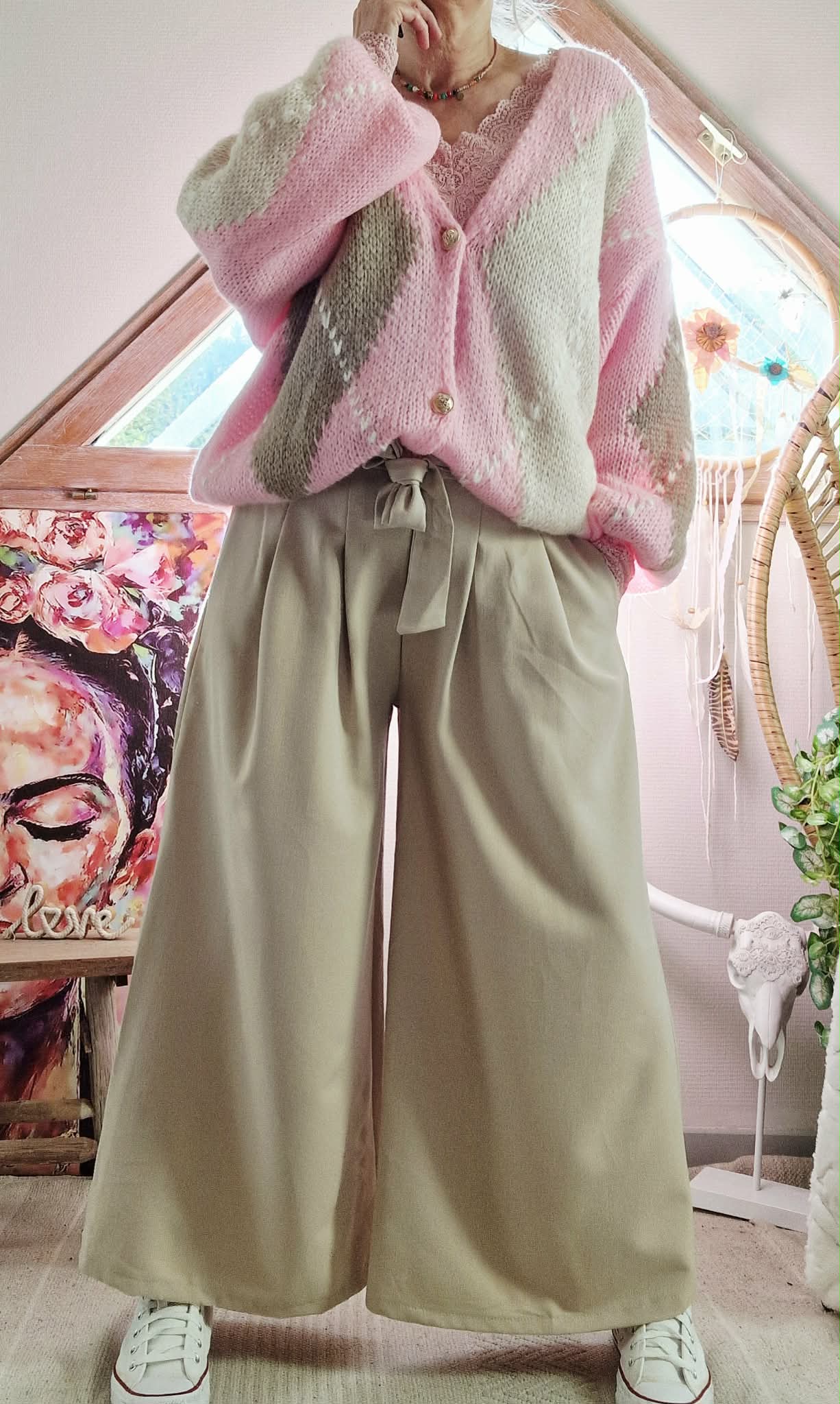 Pantalon large beige
