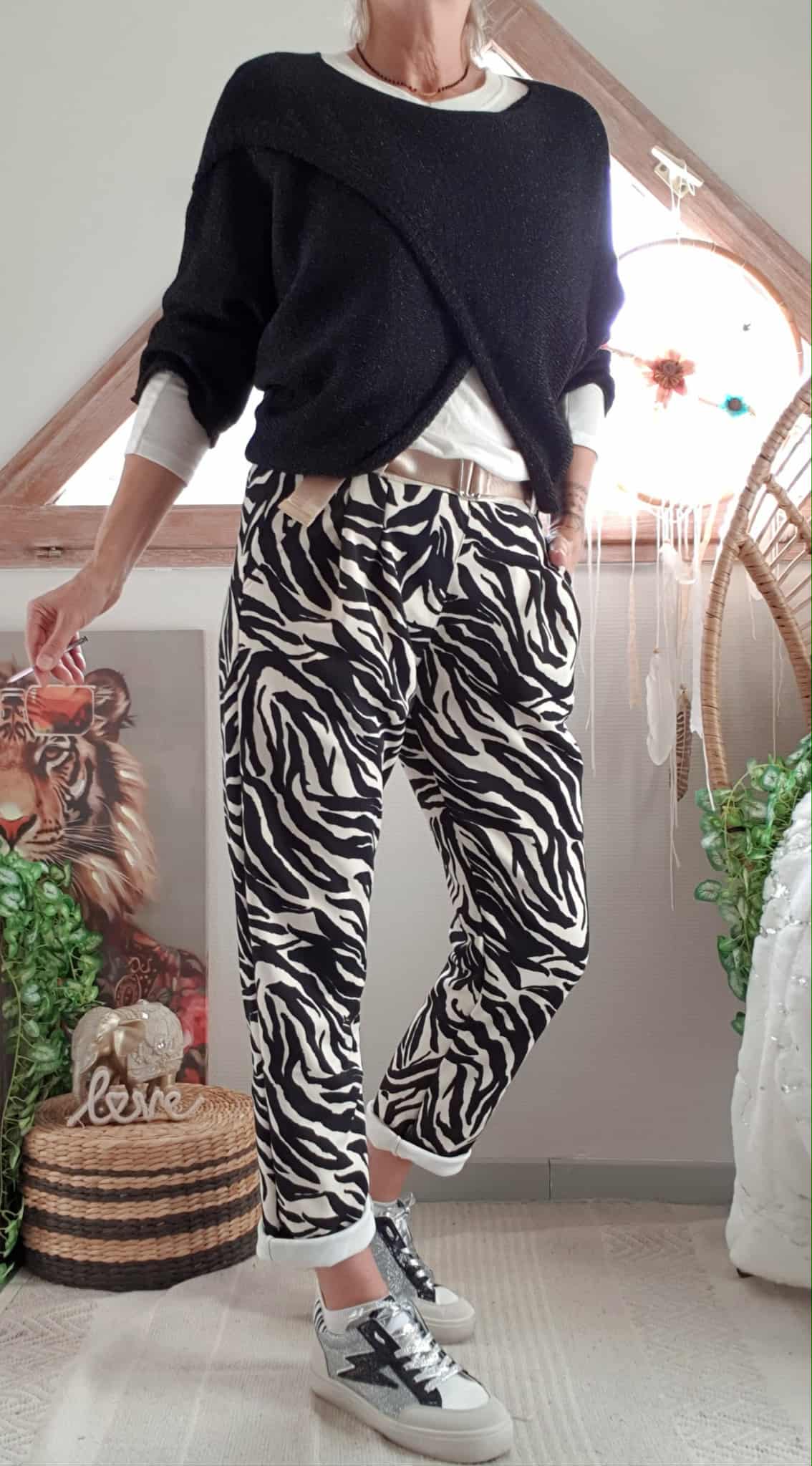 Je le porte en superposition sur un haut blanc vendu sur le site également.