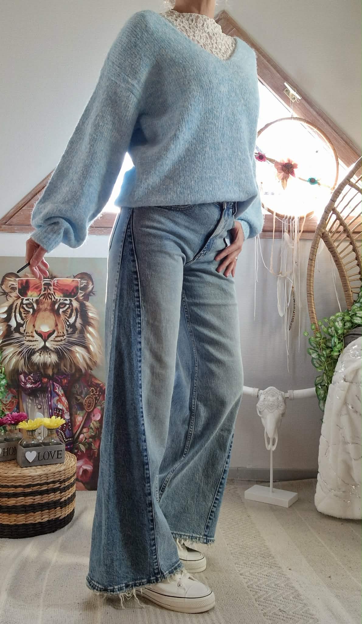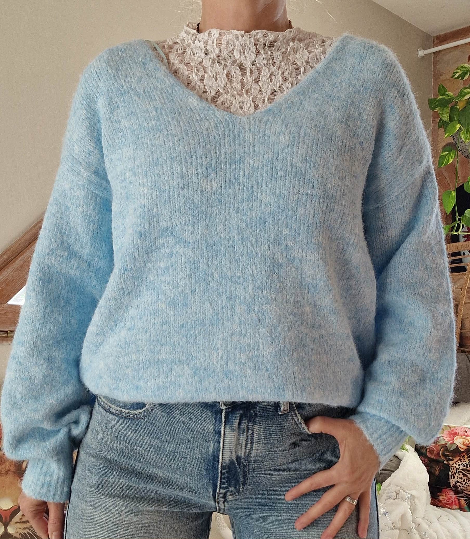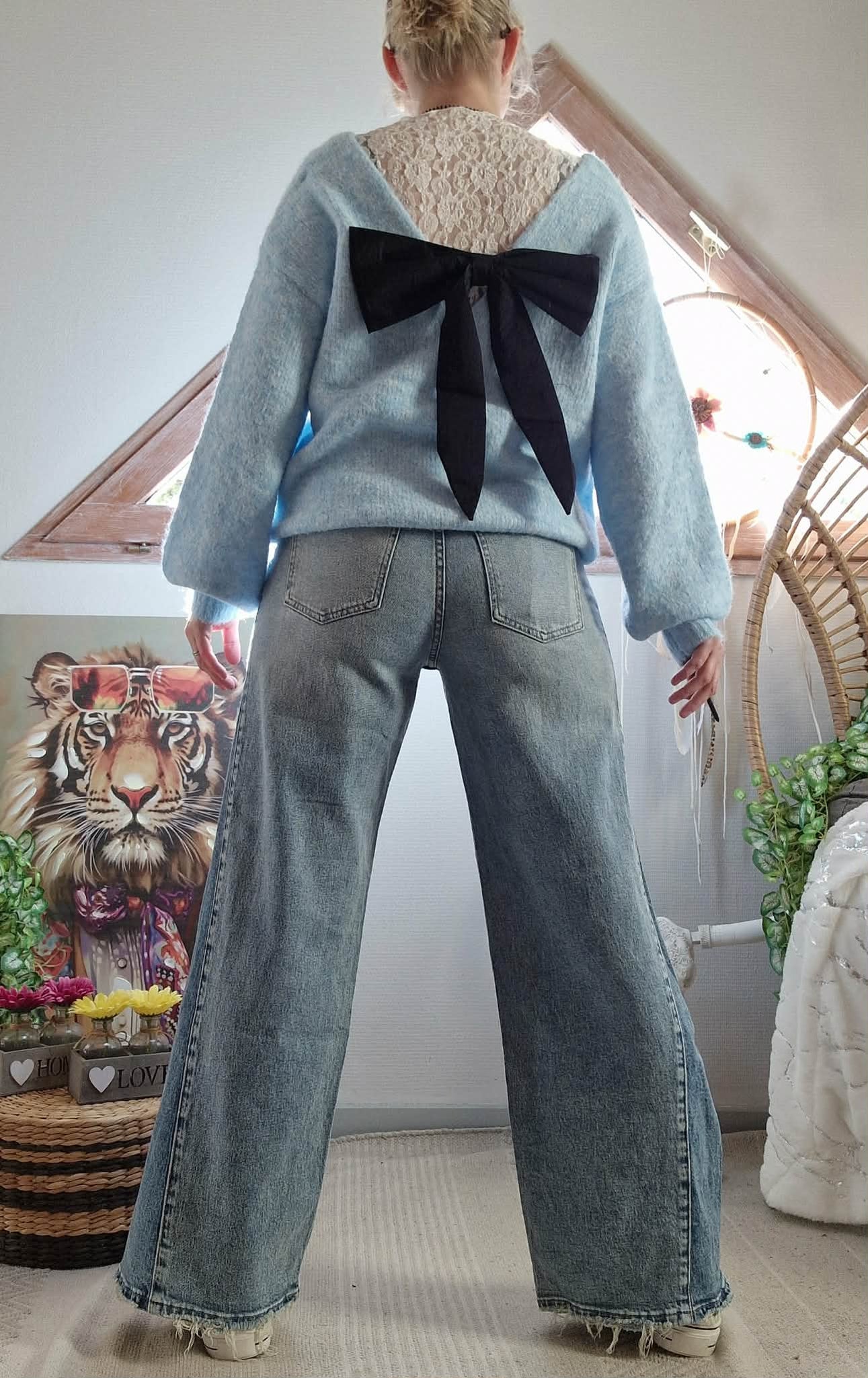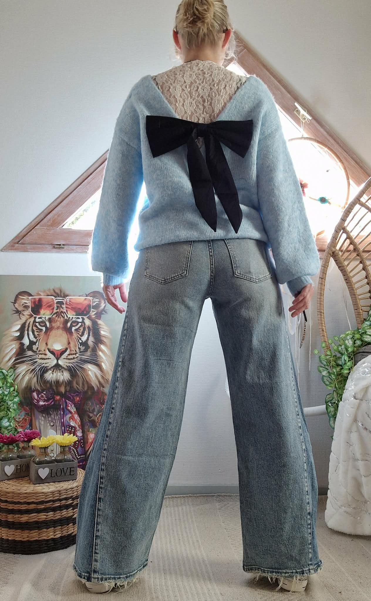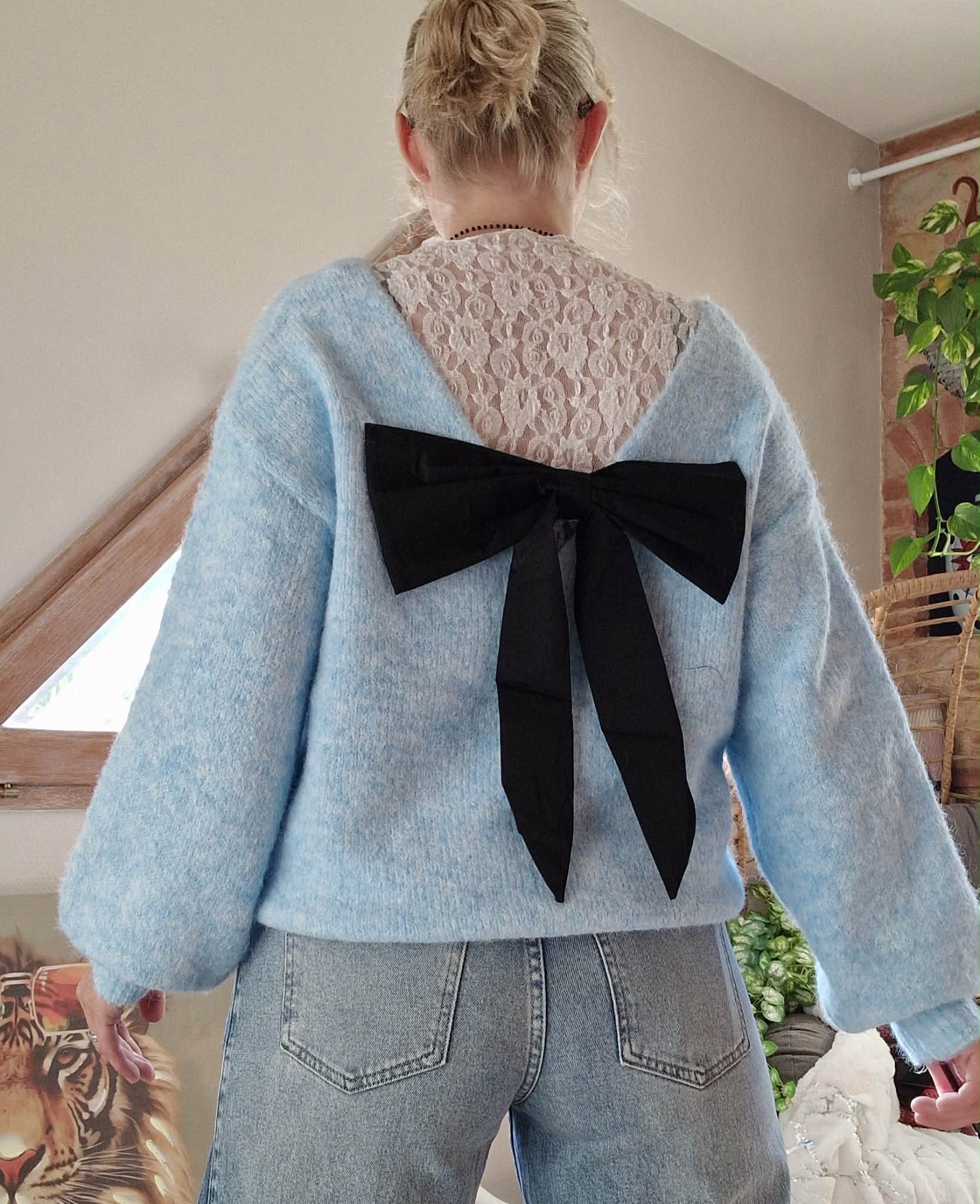 Magnifique Pull bleu avec nœud noir au dos ( peut être porté recto verso 🌸 )