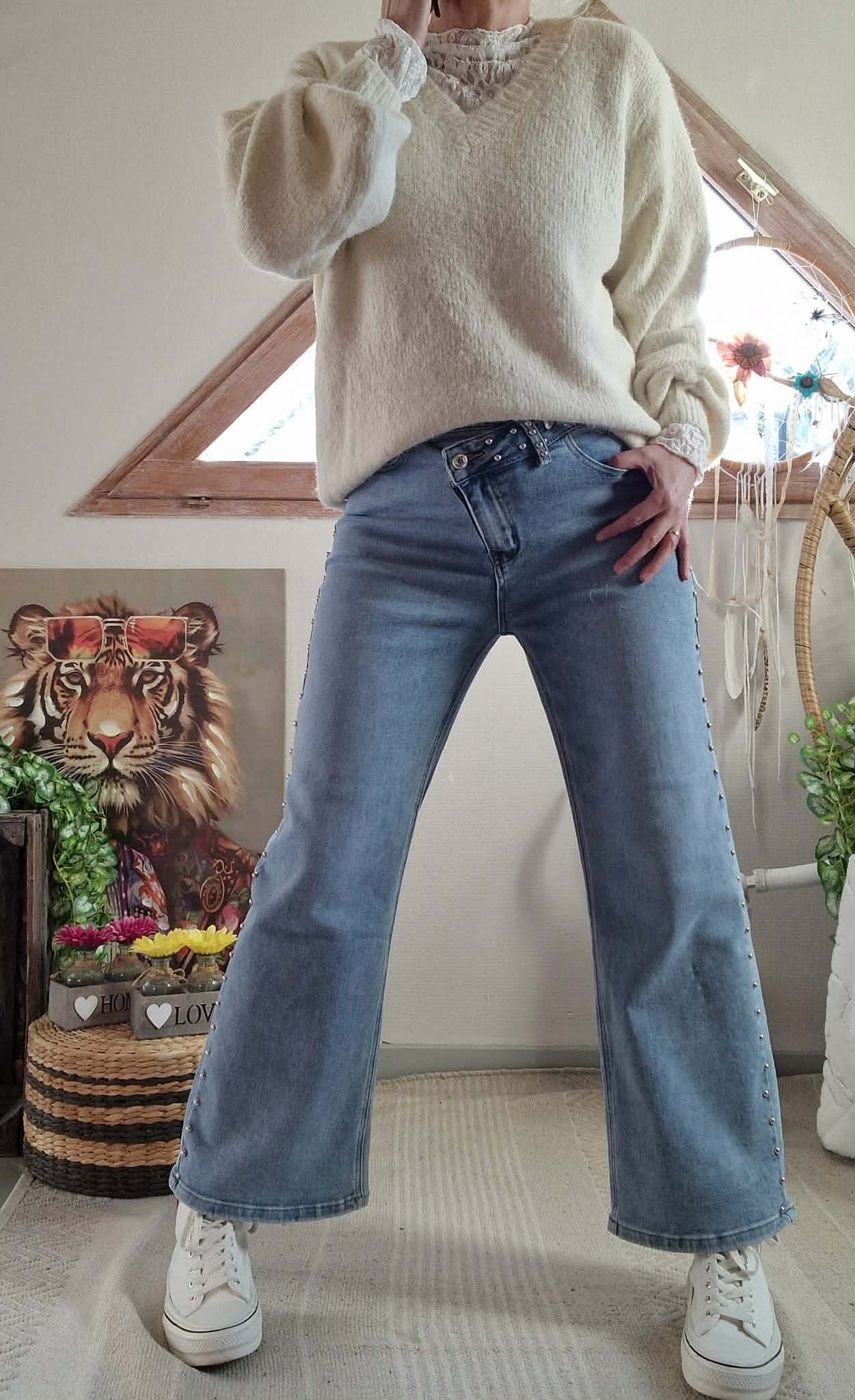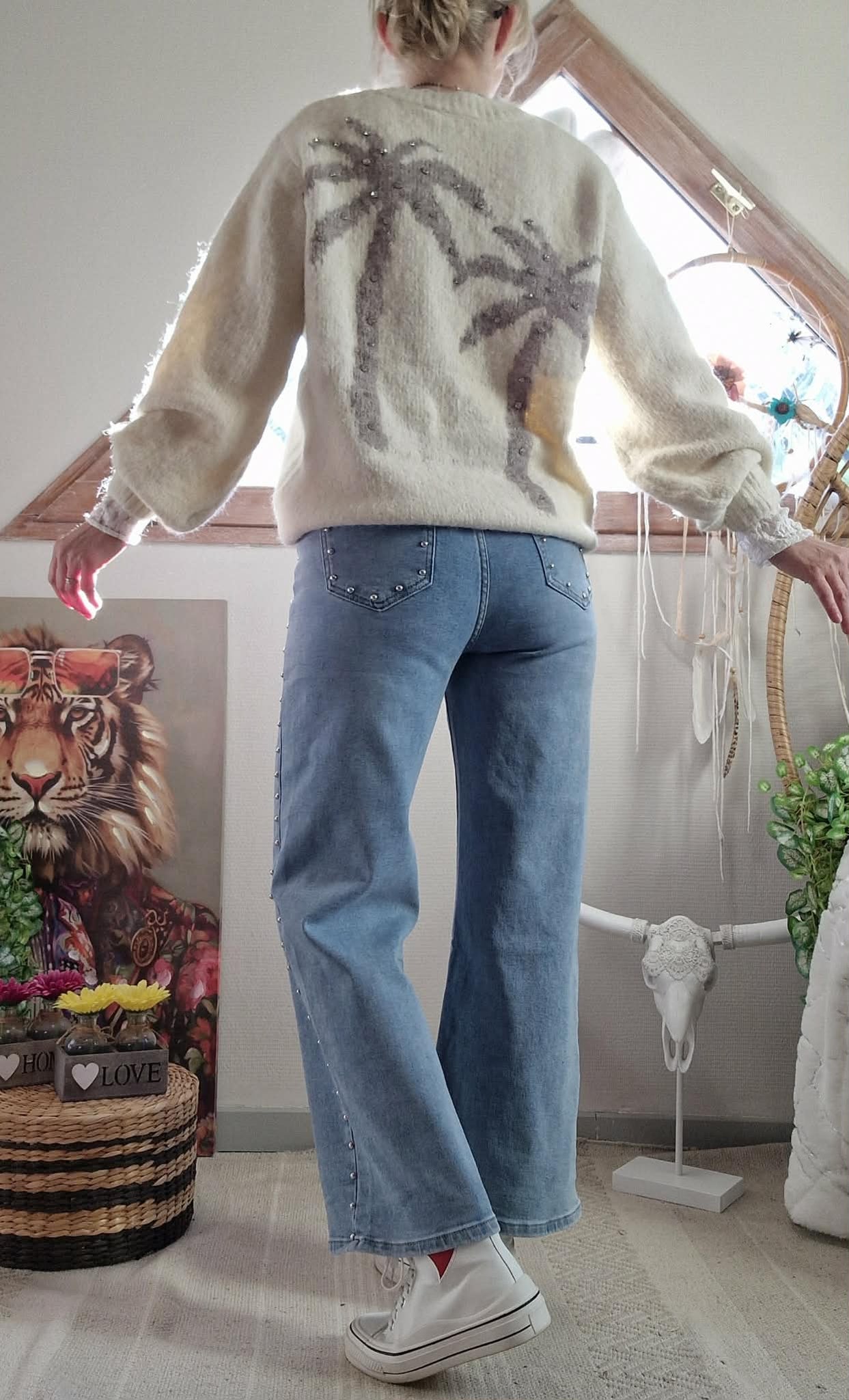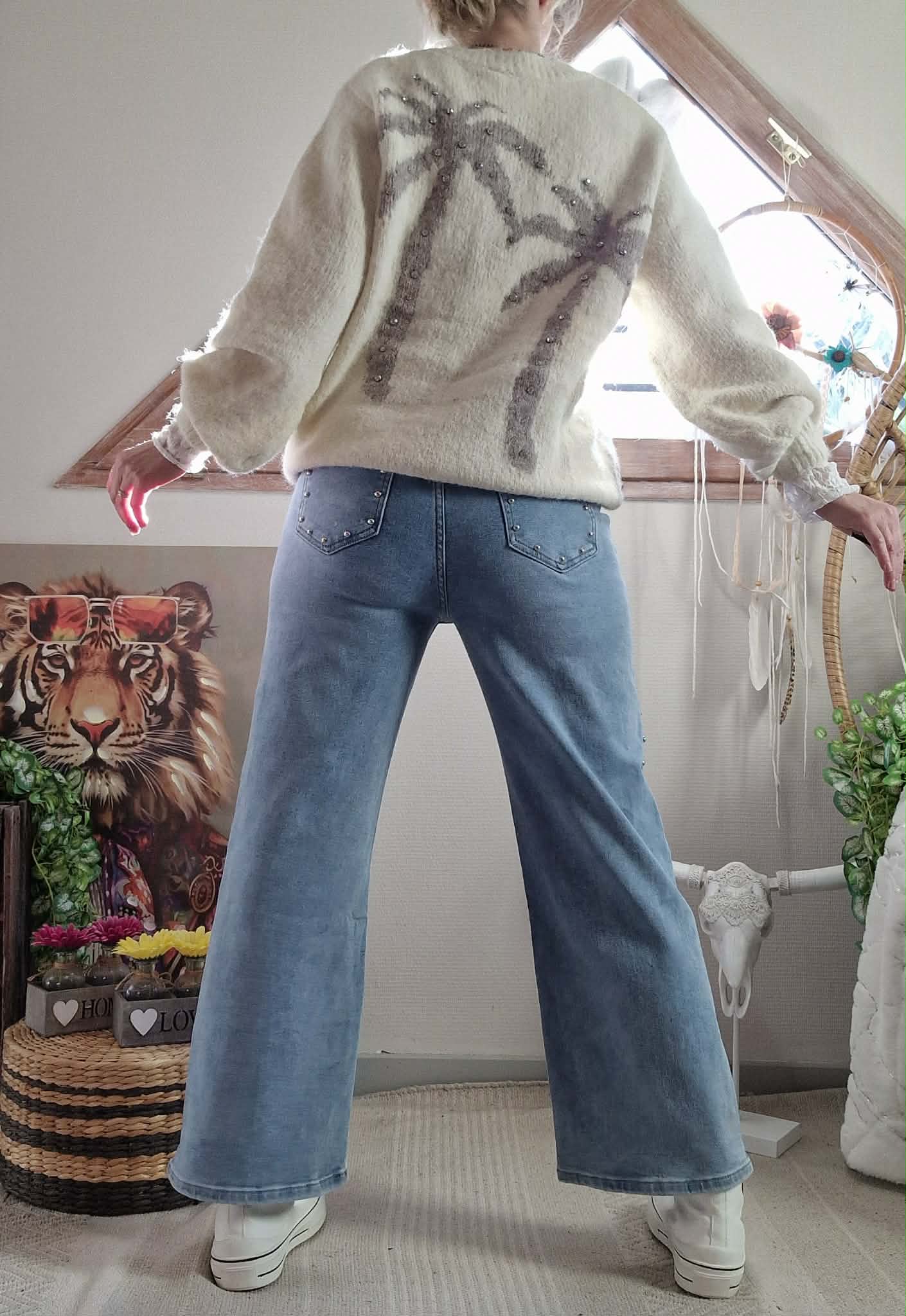 Pull Palma blanc/beige , col V manches longues.