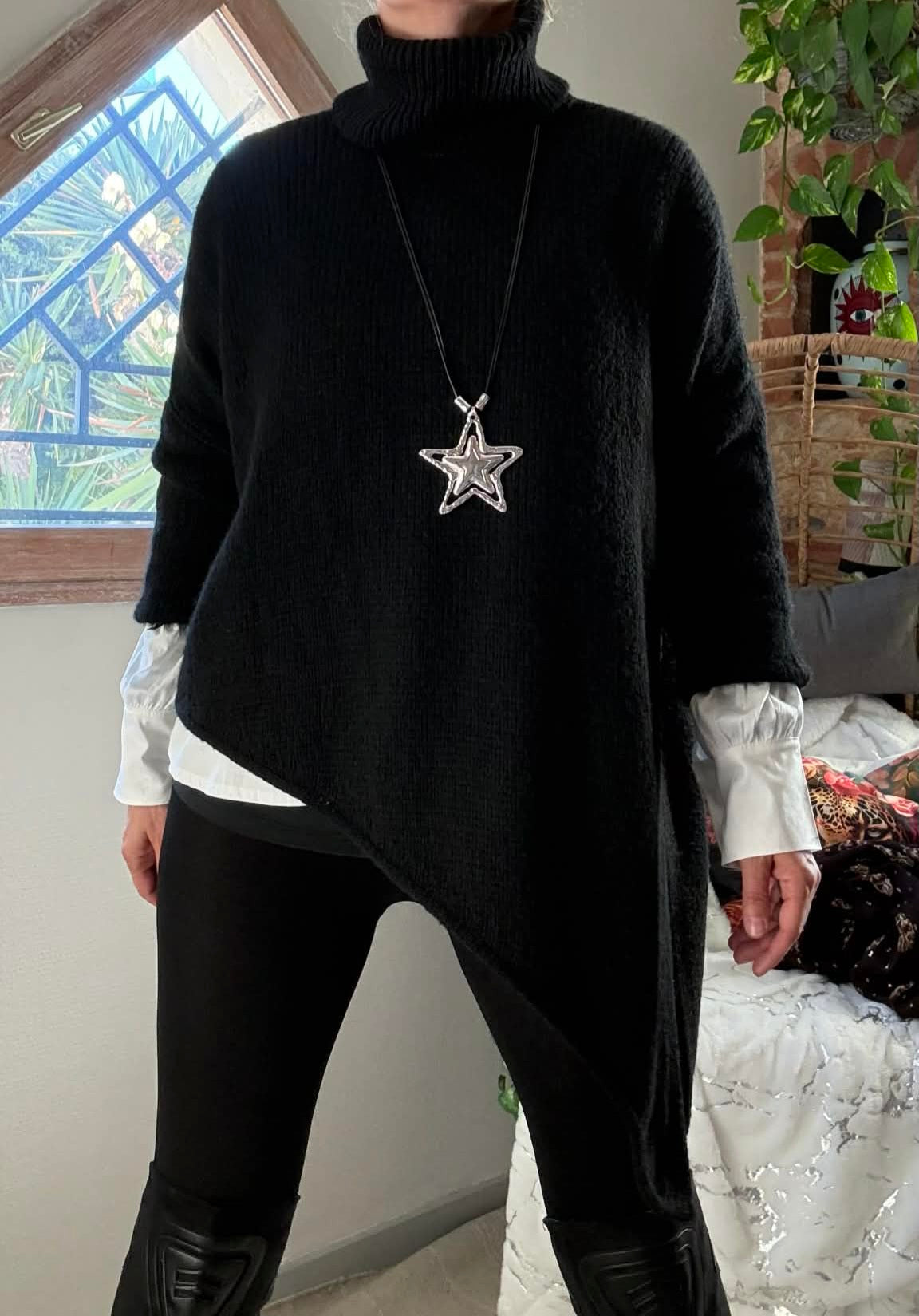 Pull Asymétrique Col roulé kaki