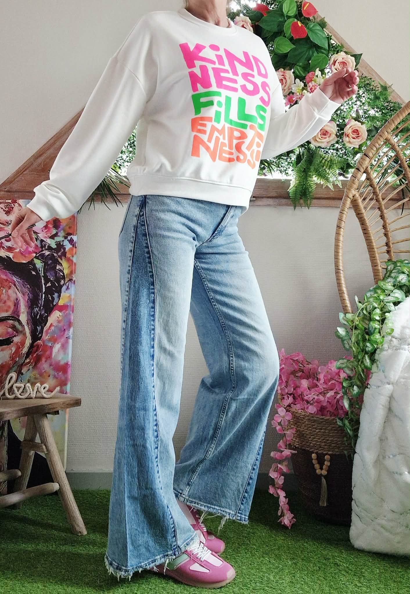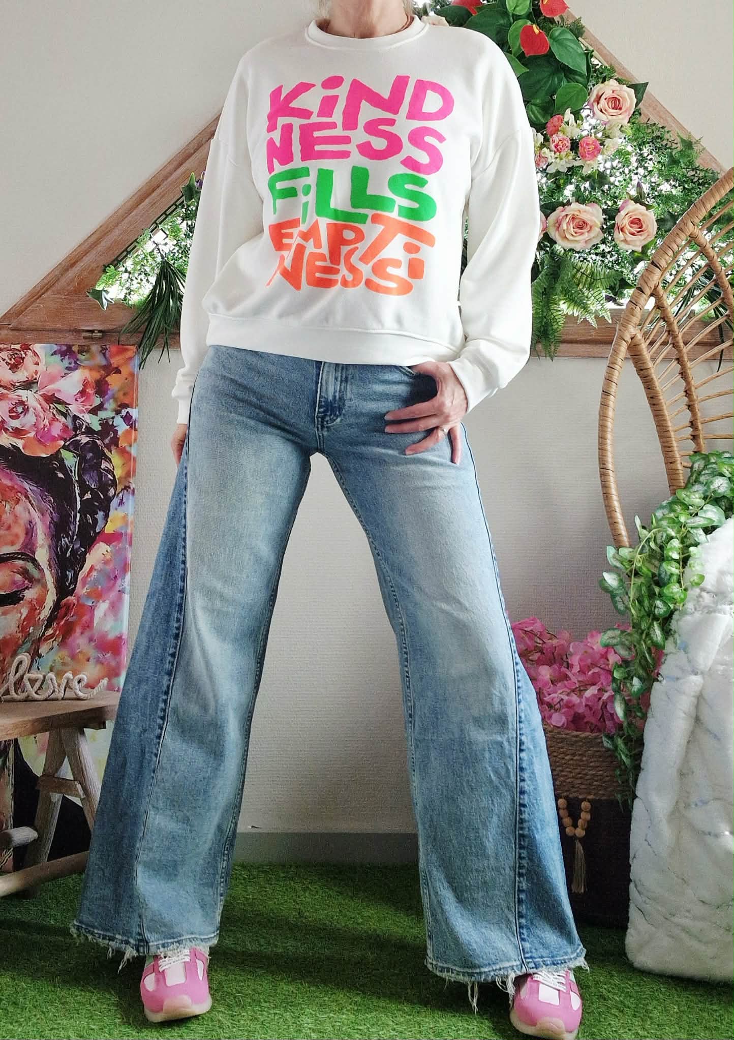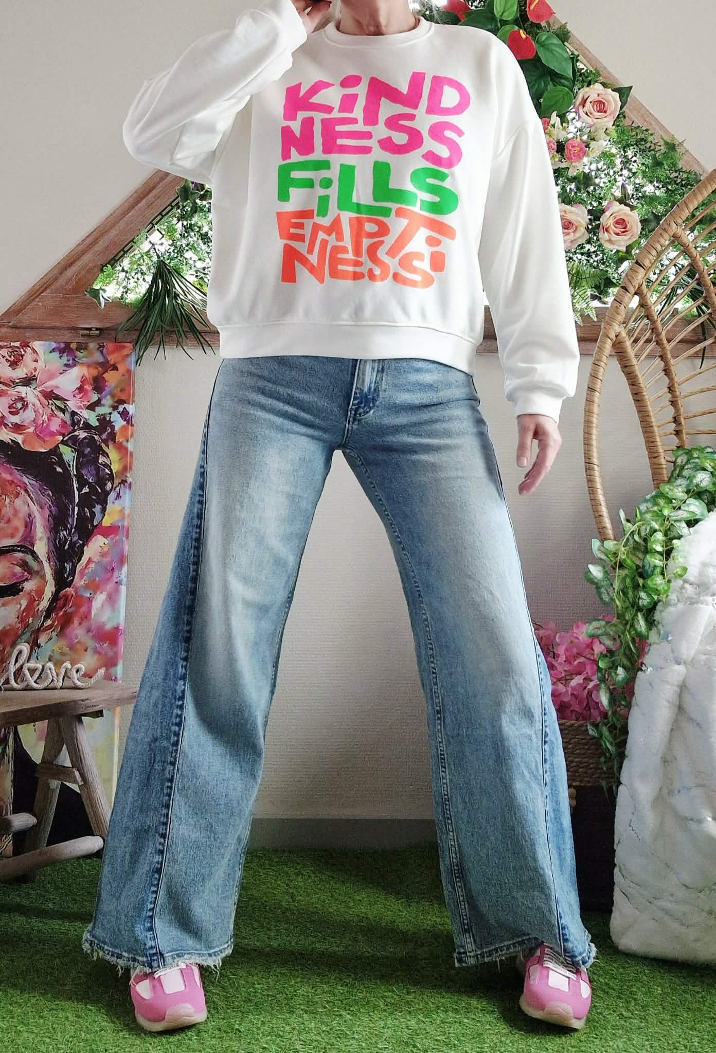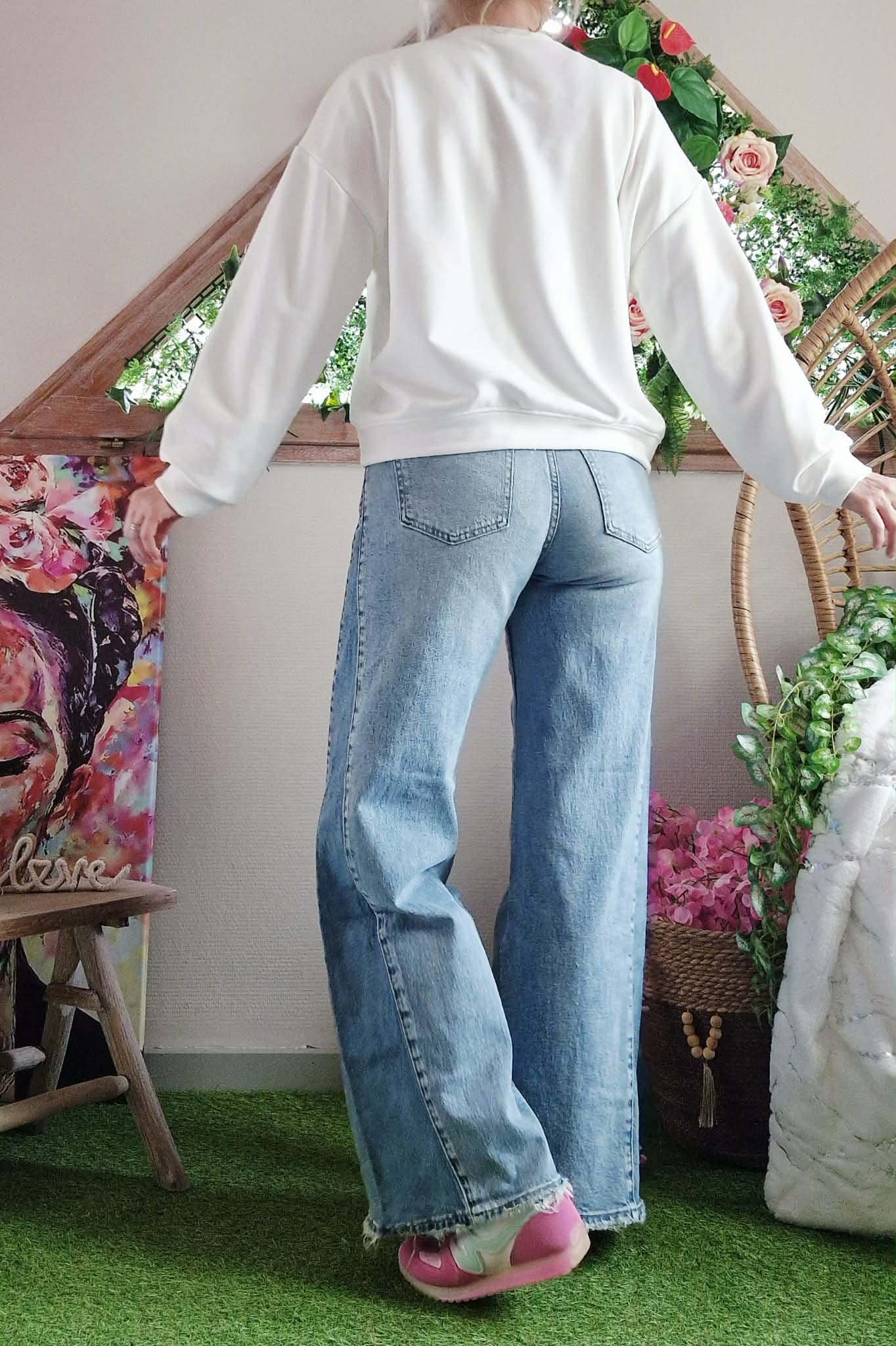 Sweat Ness blanc col rond manches longues.