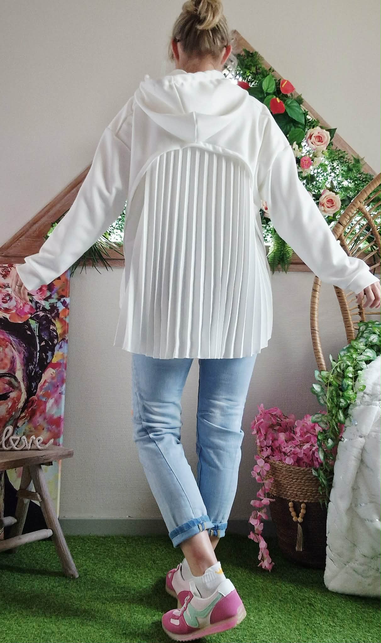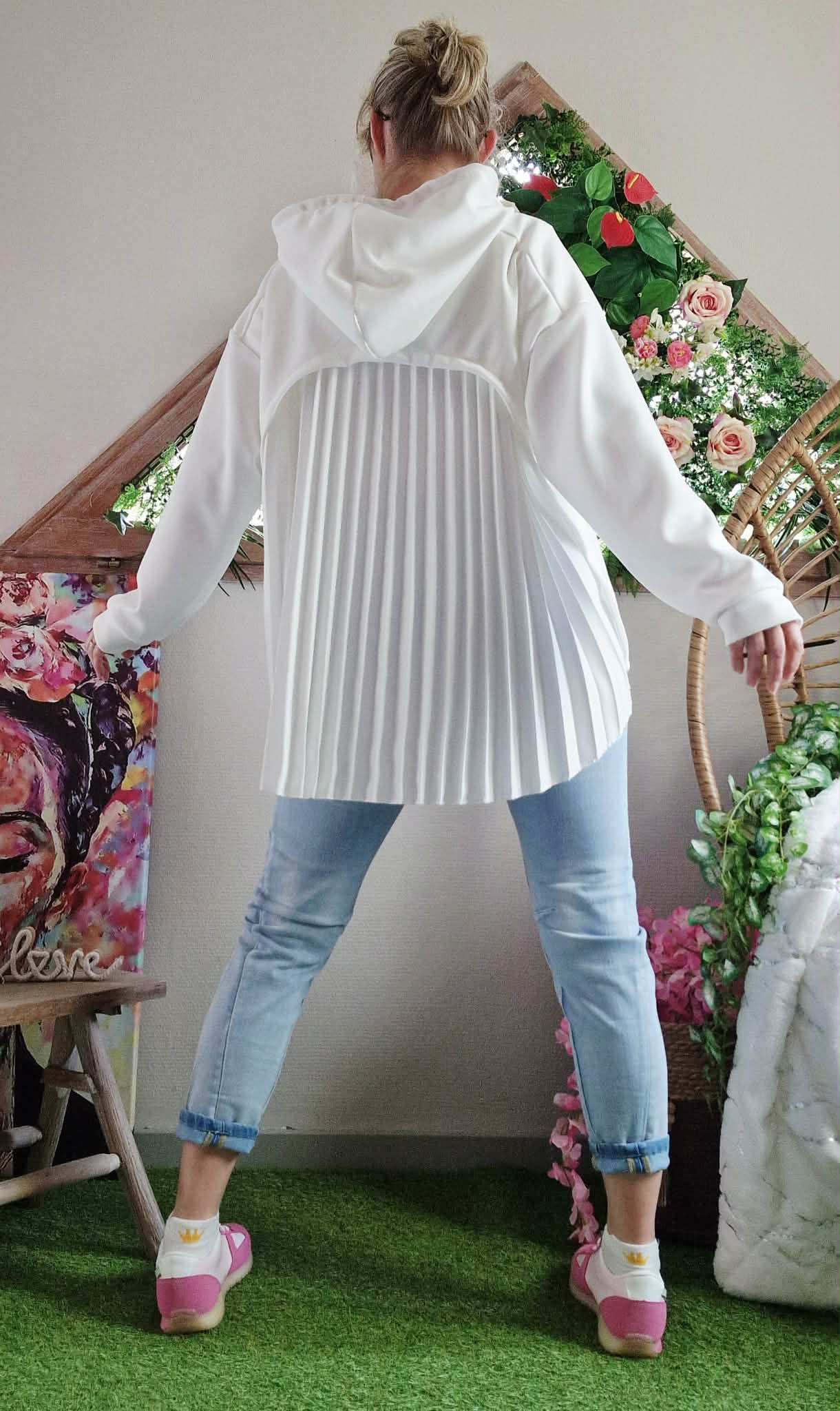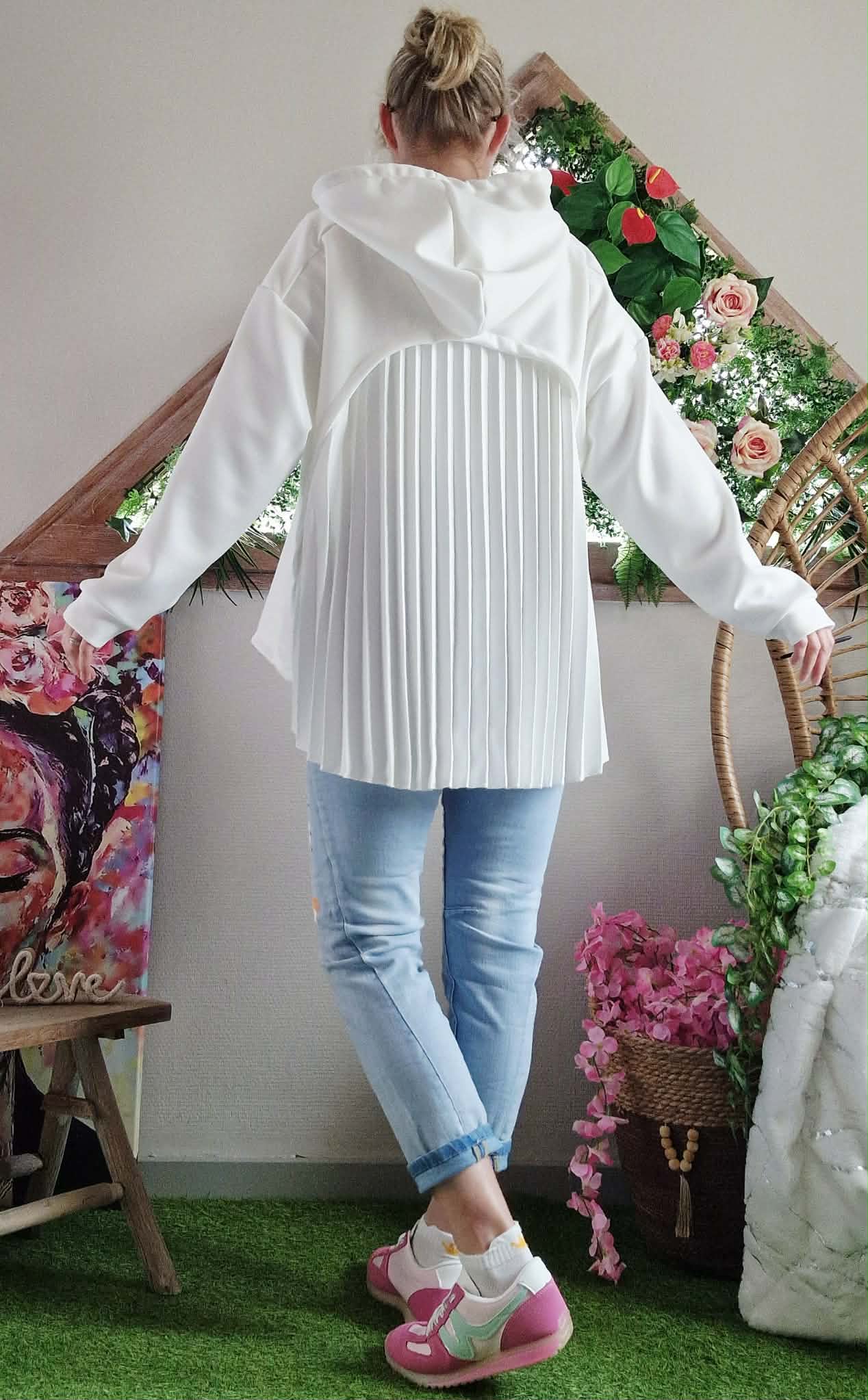 Sweat Charlotte avec capuche à dos plissé .