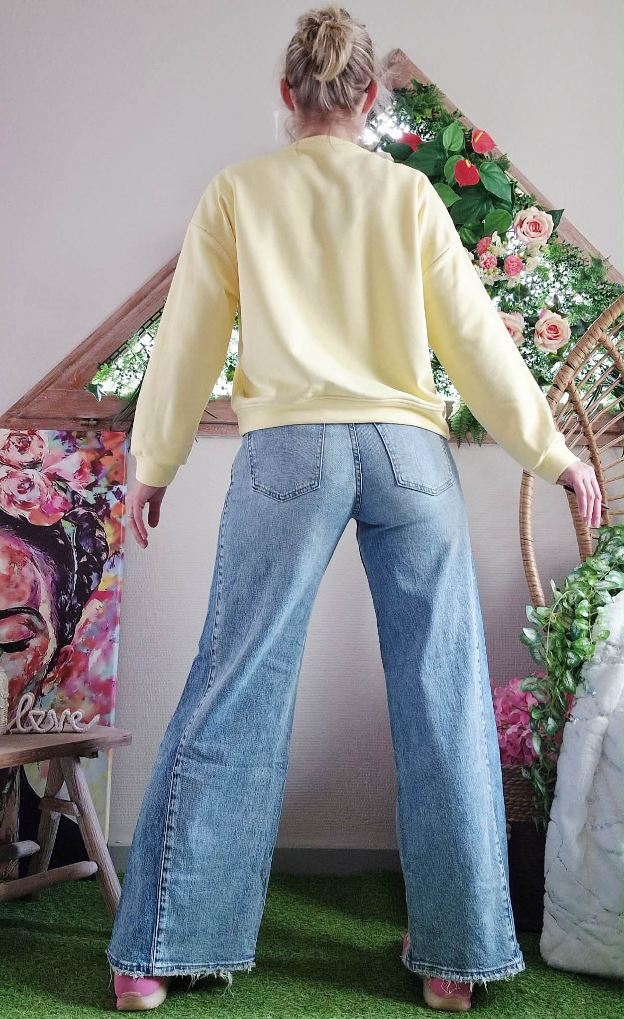 Sweat Ness jaune col rond manches longues.