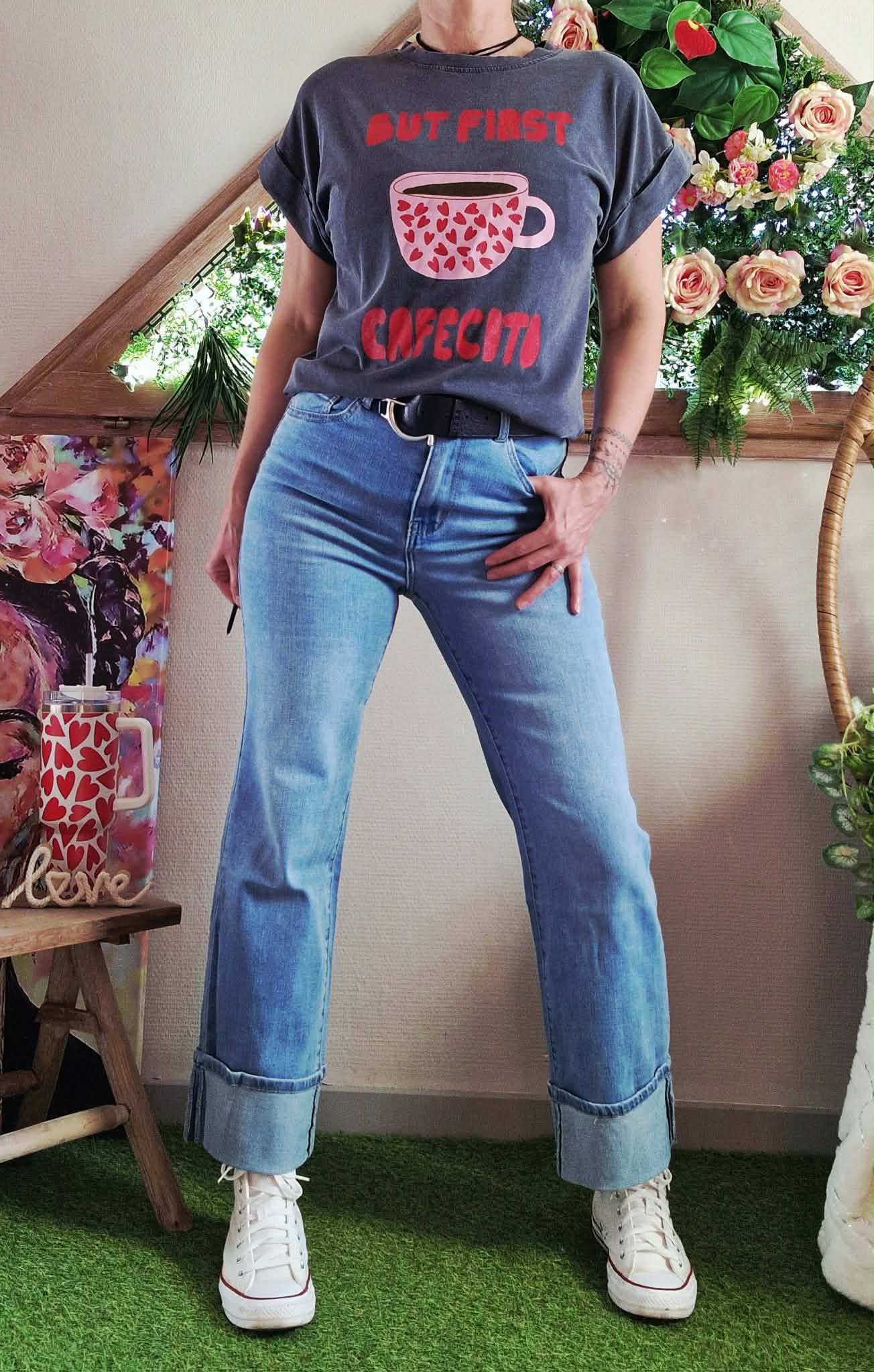 Tee-shirt Coffee 🩷 noire délavé avec dessin devant.
