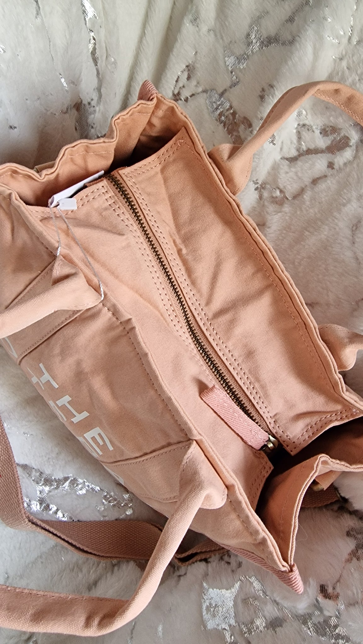 Sac noir The Tote rose en tissu épais.