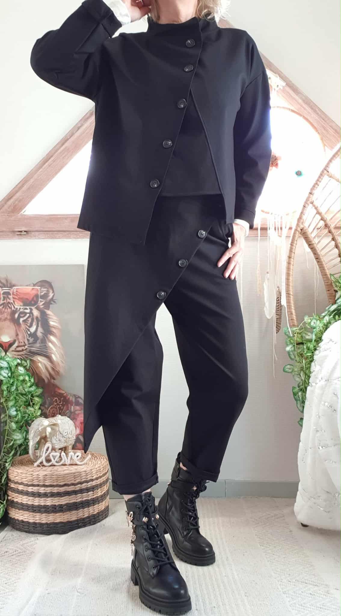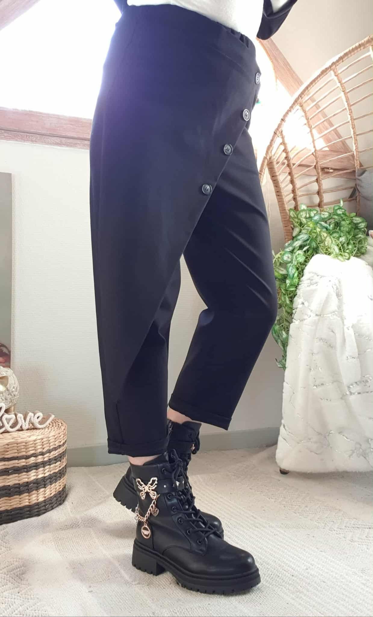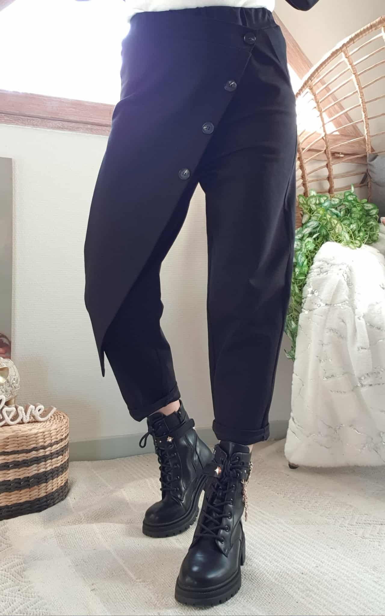 Jogg Louis noir, fausse jupe devant boutonnée. , une poche côté et taille élastique.