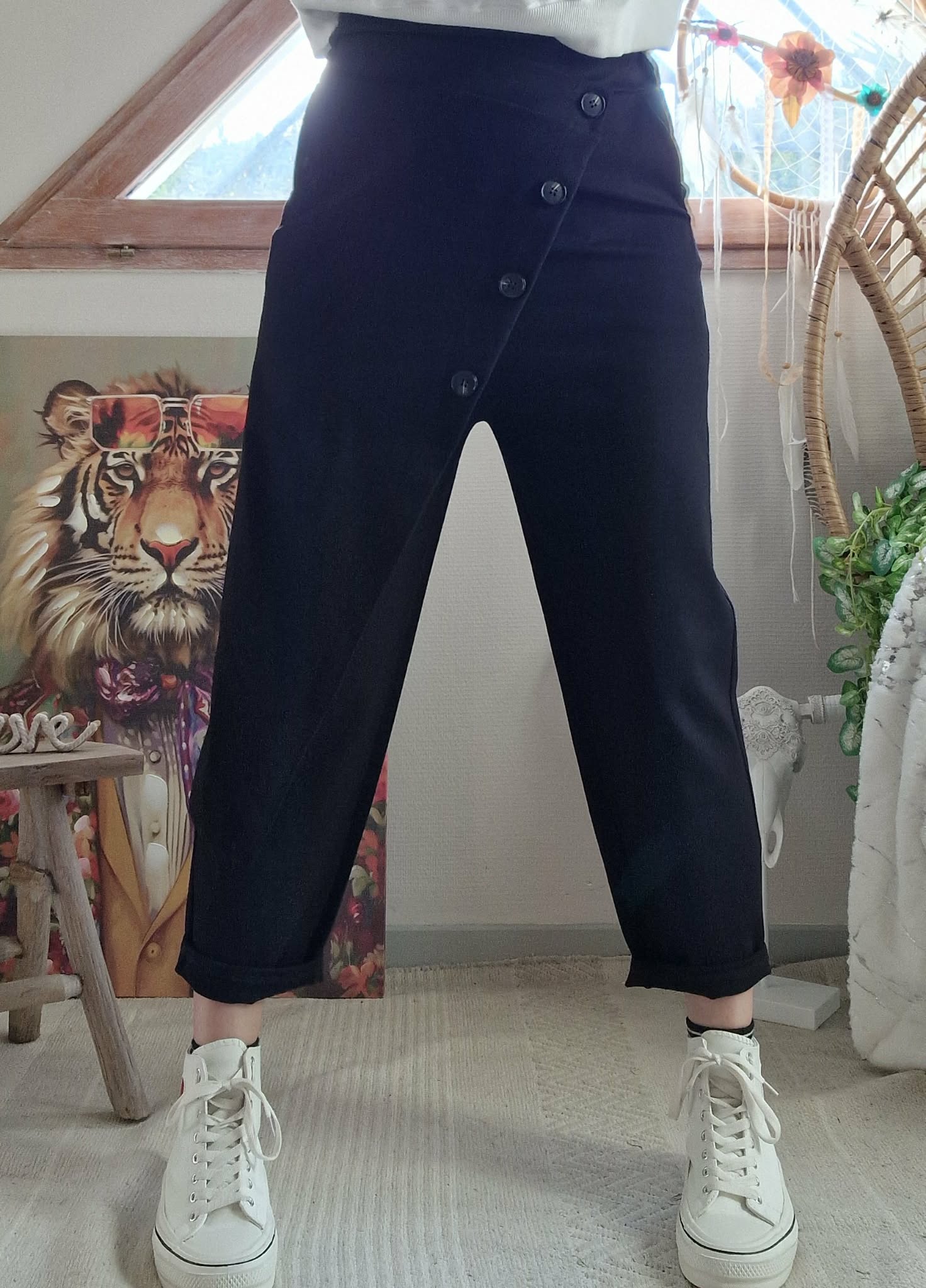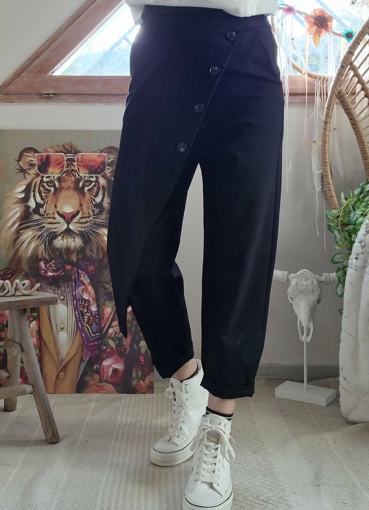 Jogg Louis noir, fausse jupe devant boutonnée. , une poche côté et taille élastique.