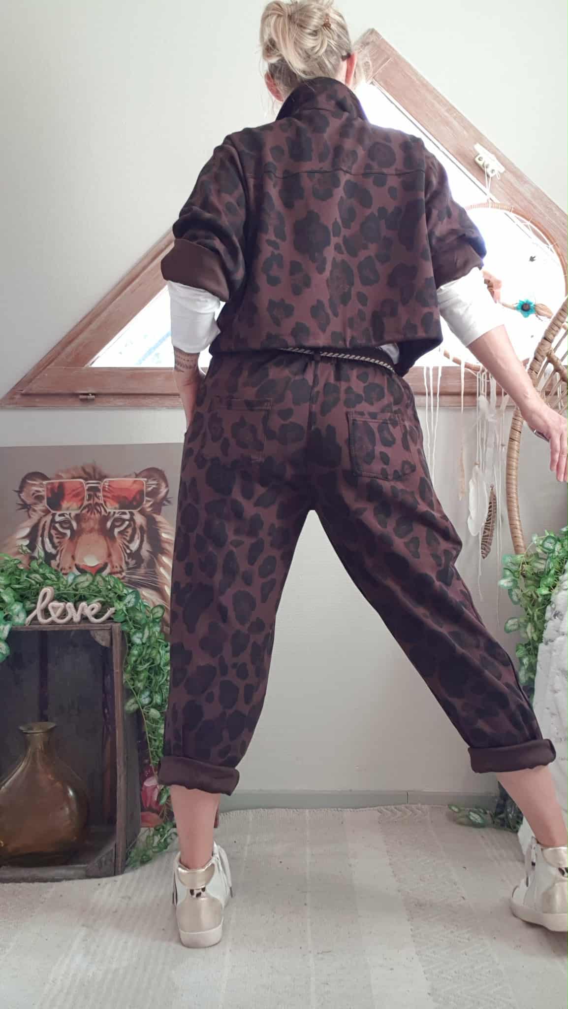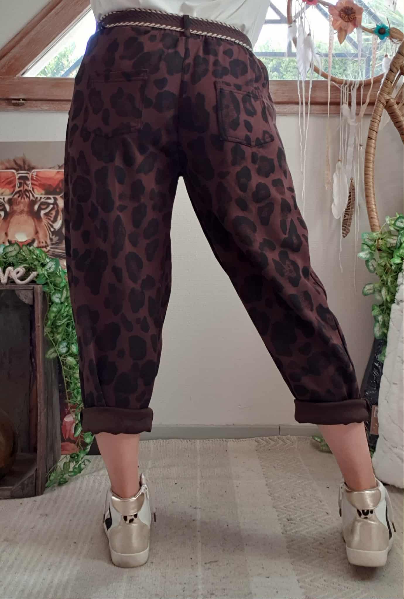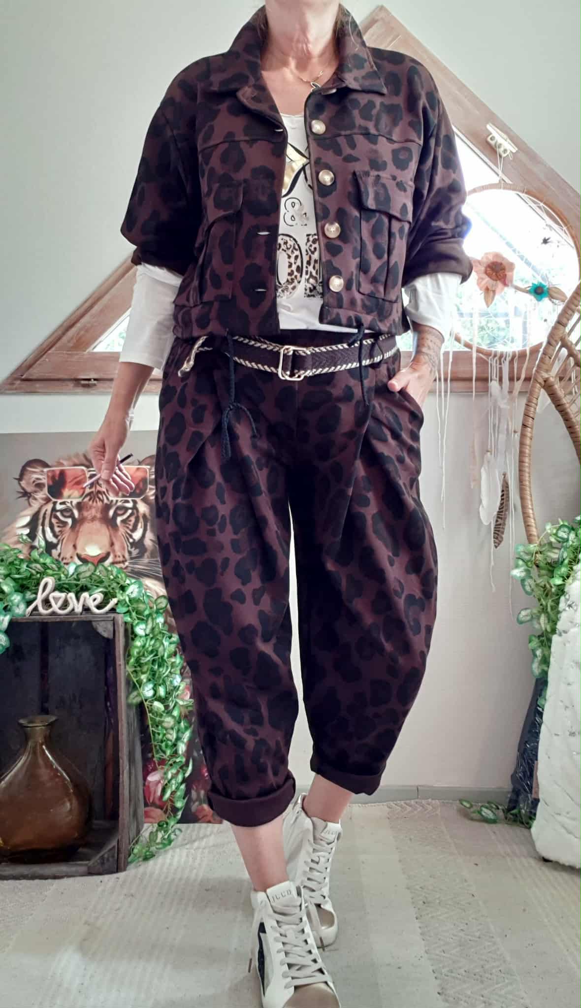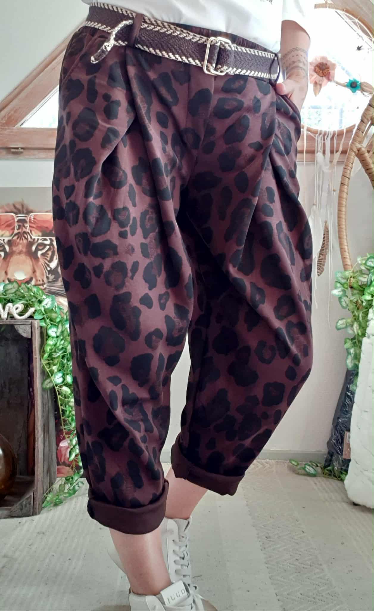 Jogg Léo Chocolat avec ceinture fantaisie. Poches côté et plaquées dos.