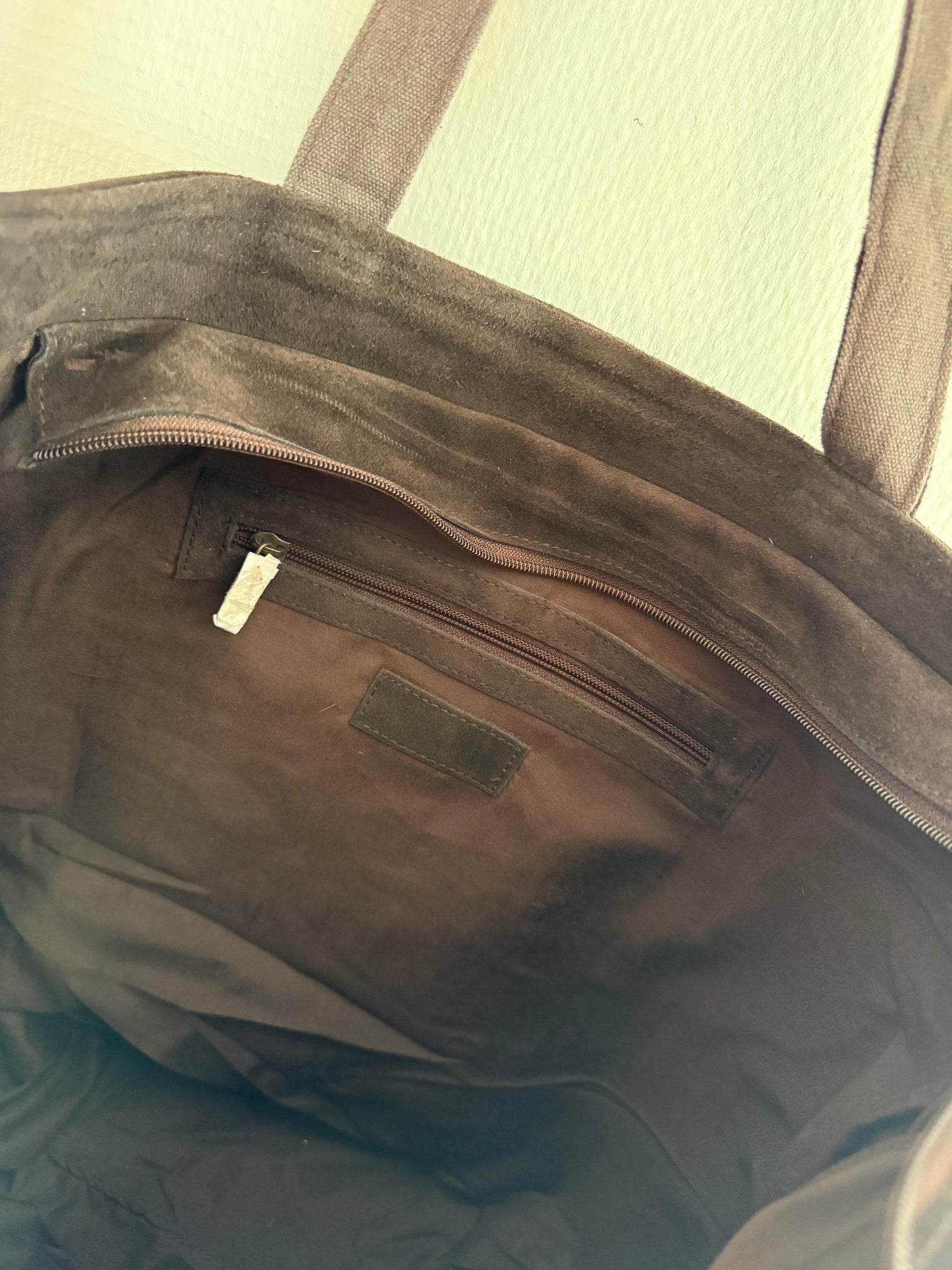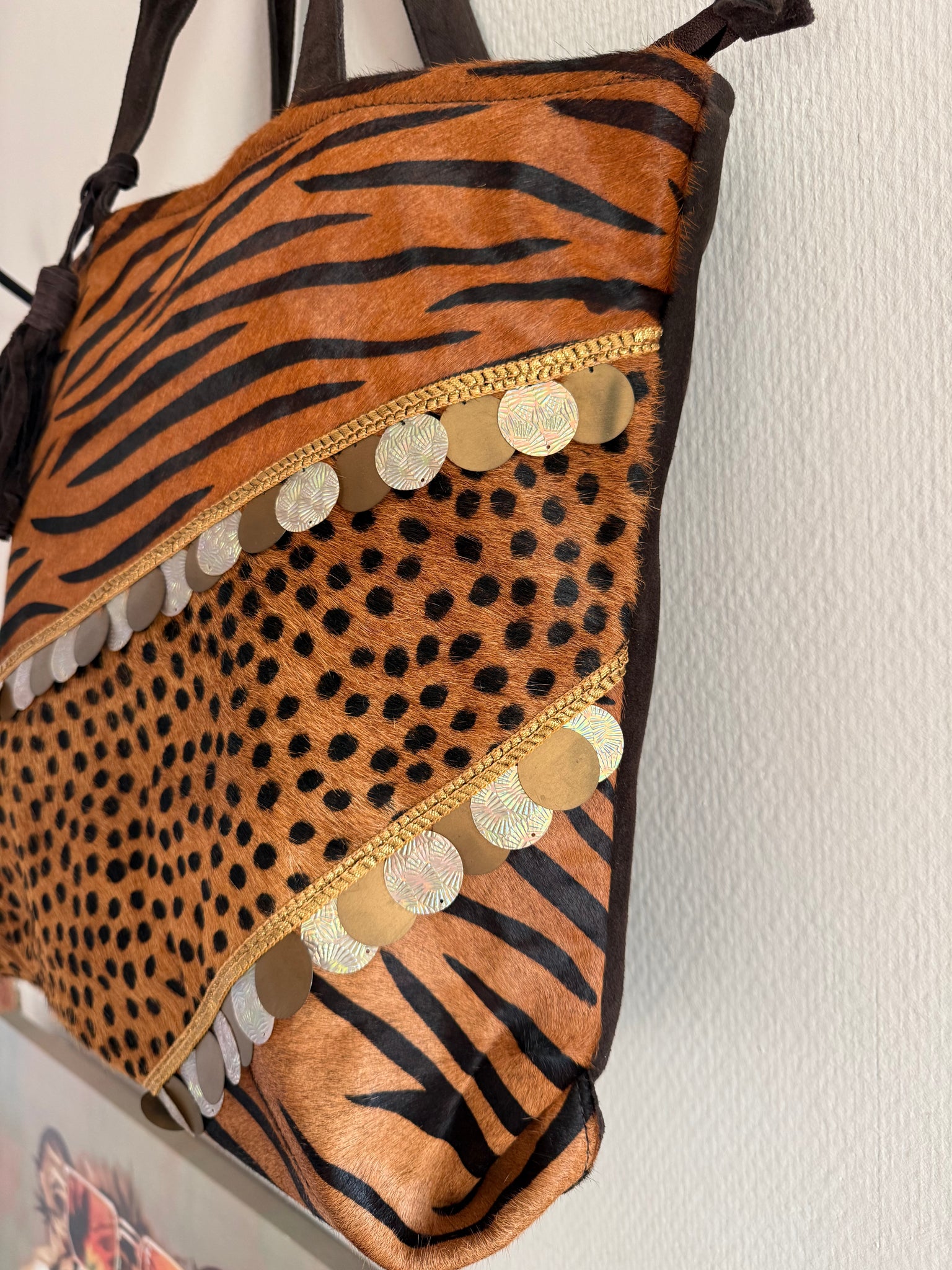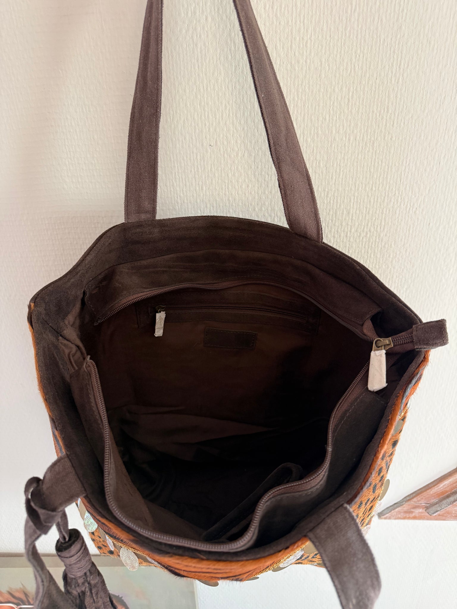 Sac Cabas imprimé zèbre camel et noir devant . Dos chocolat.