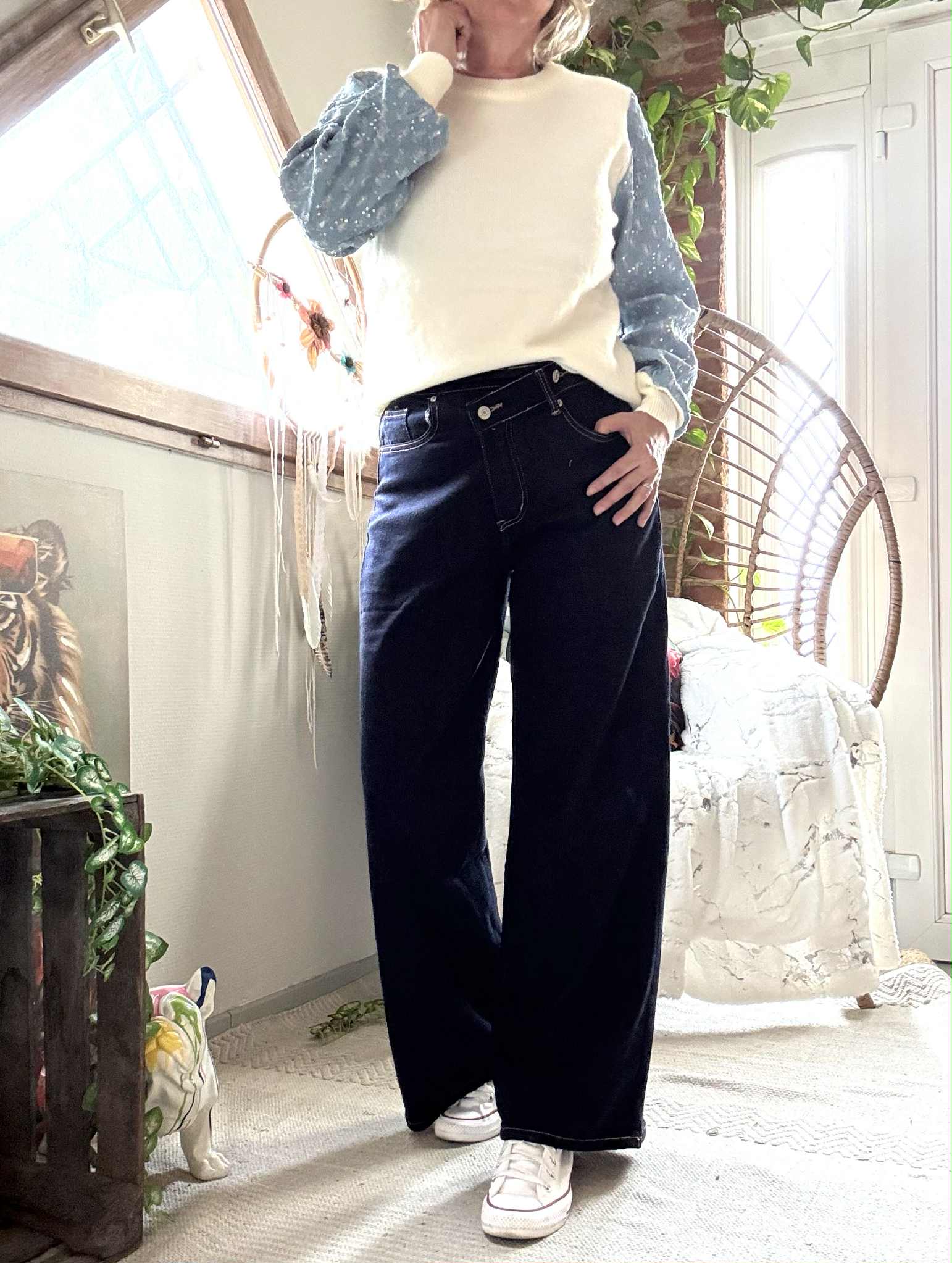Pull Bleu Jeans blanc avec manches jeans sequins, juste CANON 😍