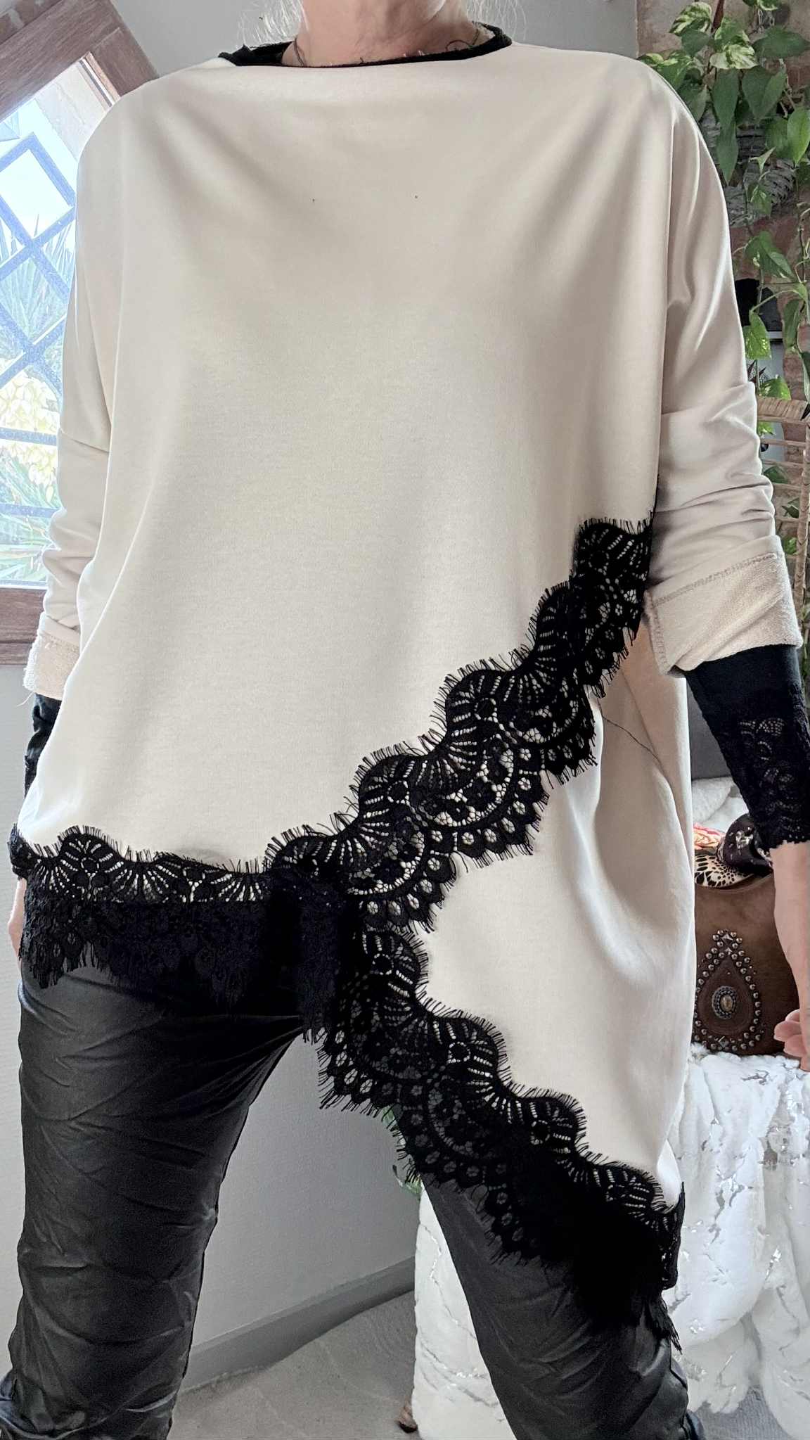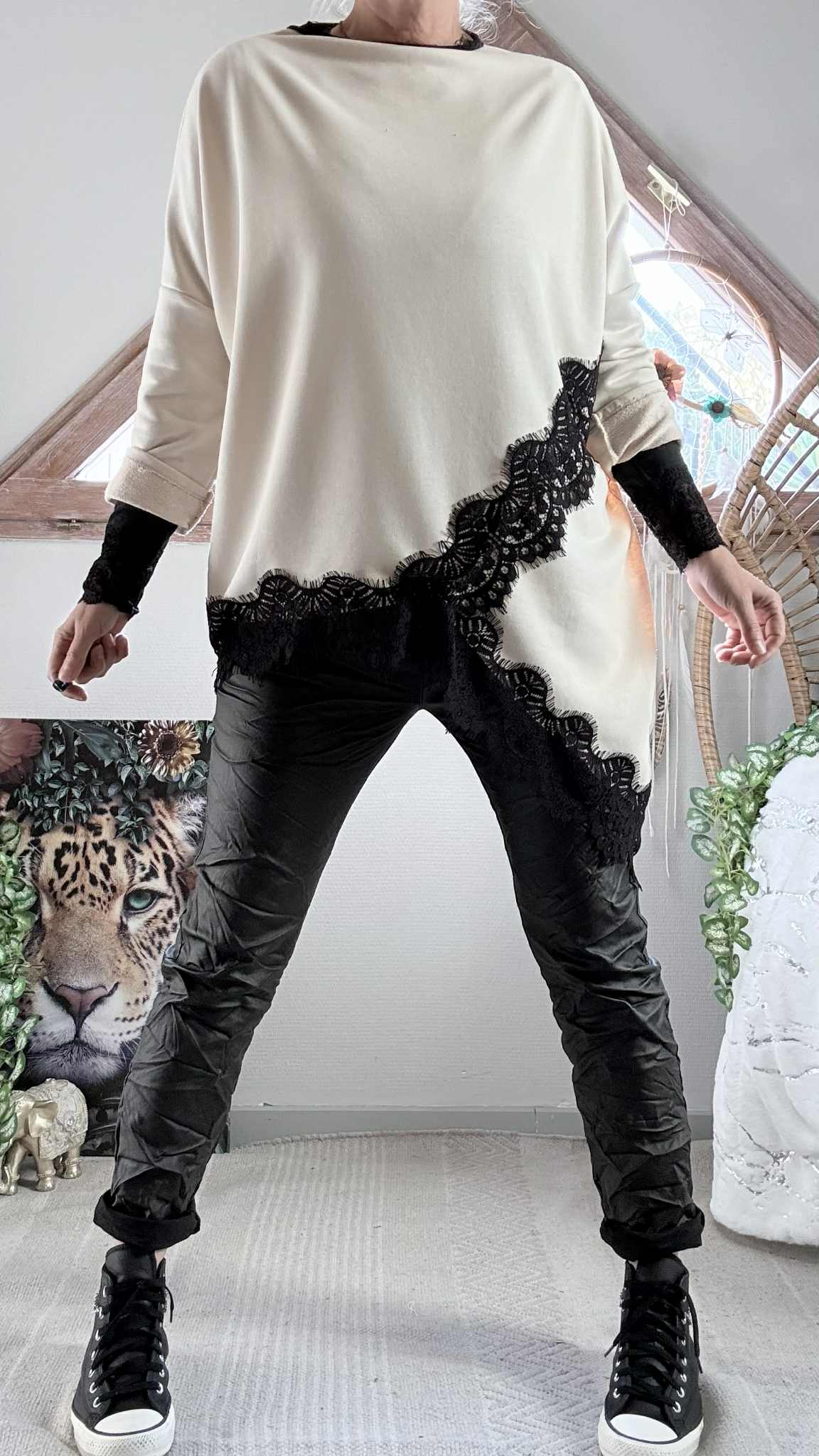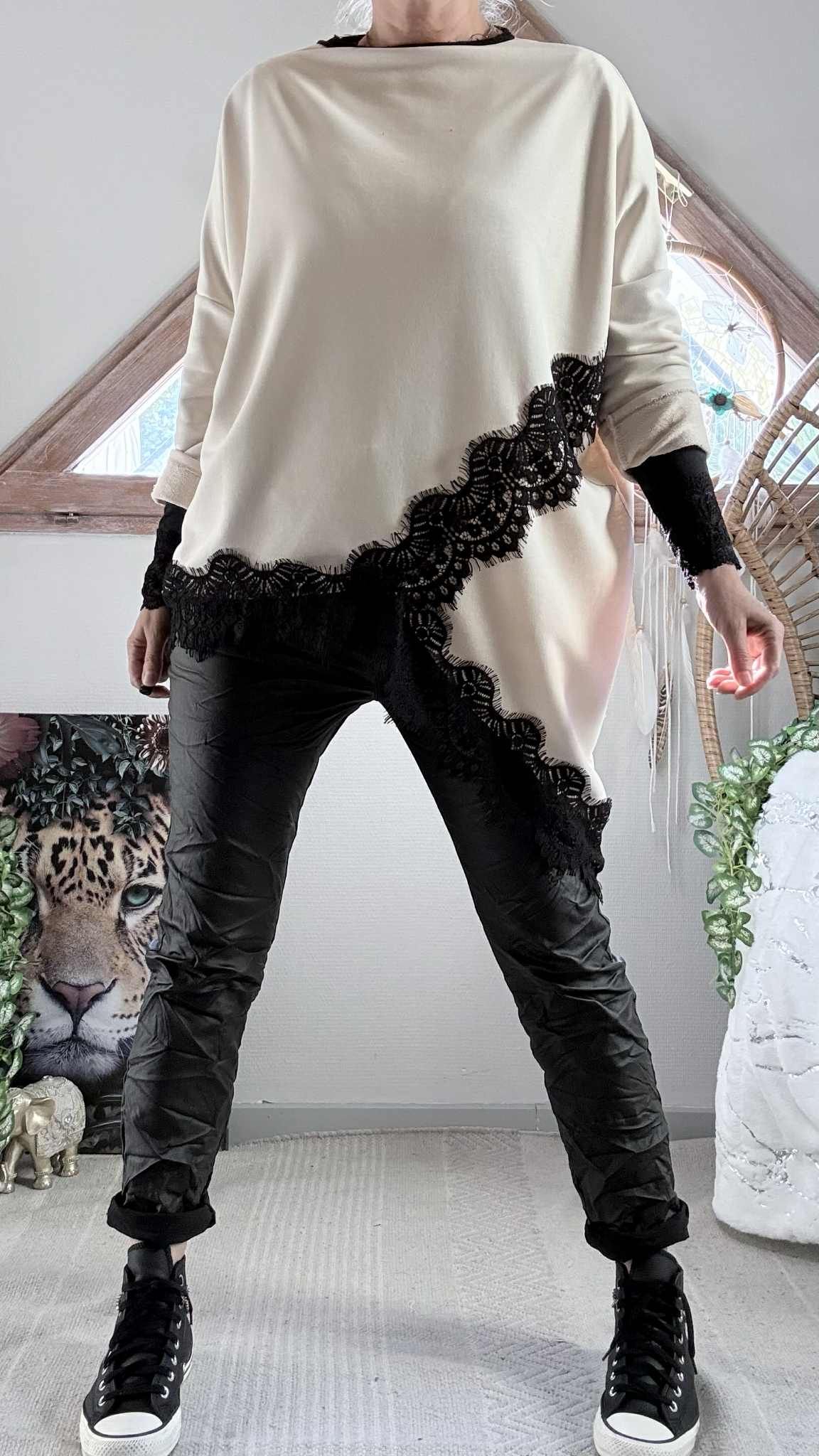Je porte un sous pull Ariana noir dessous pour faire ressortir de la dentelle au niveau des manches ☺️ Vendu également en eshop.