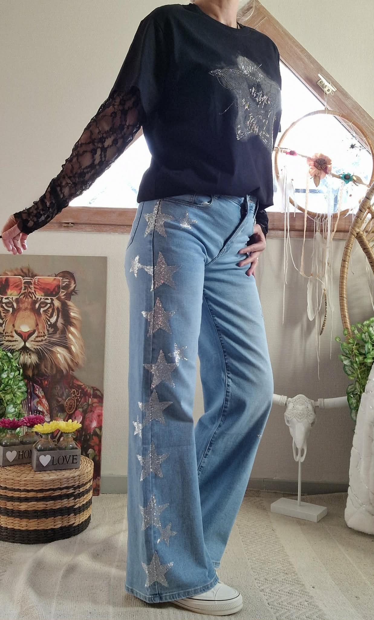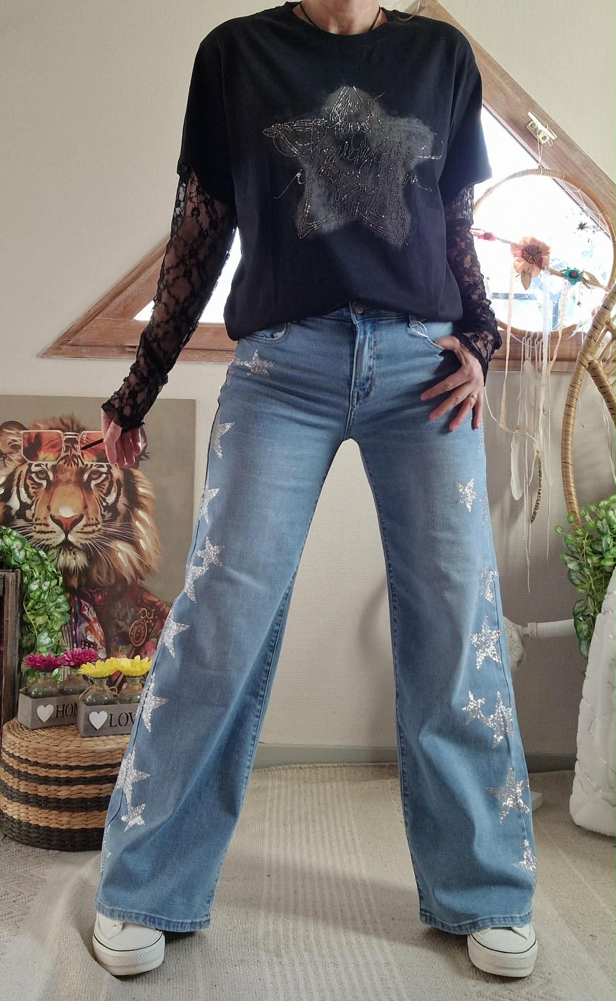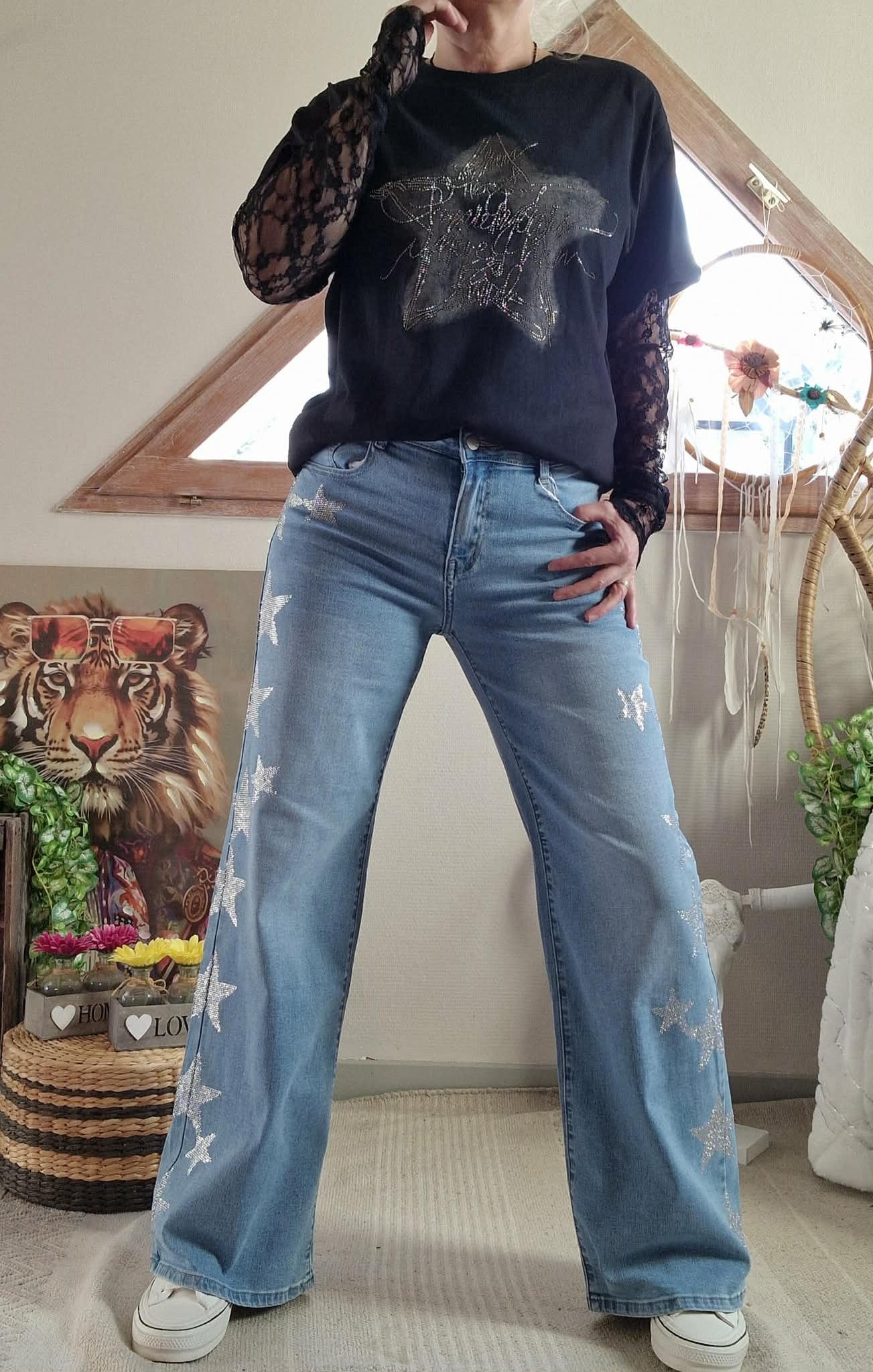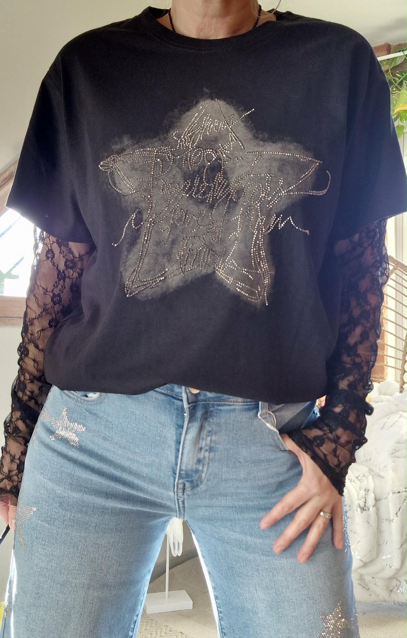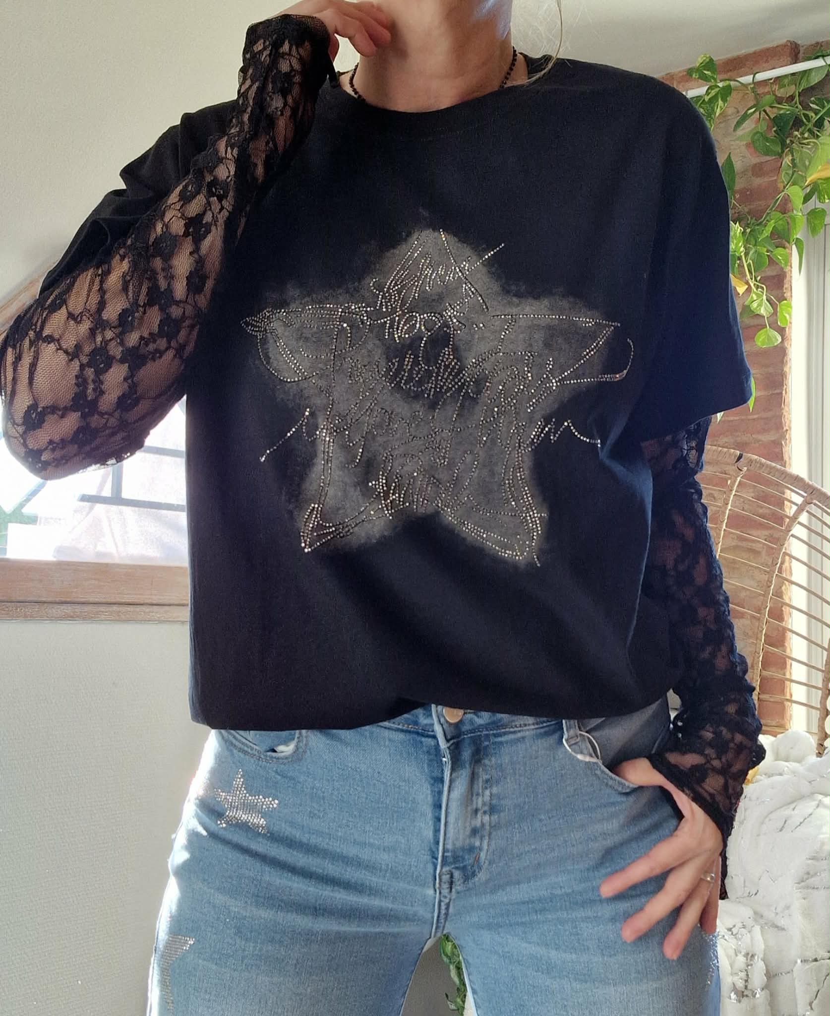 Haut  étoile strass avec manches longues et dentelle intégrée ⭐️🖤