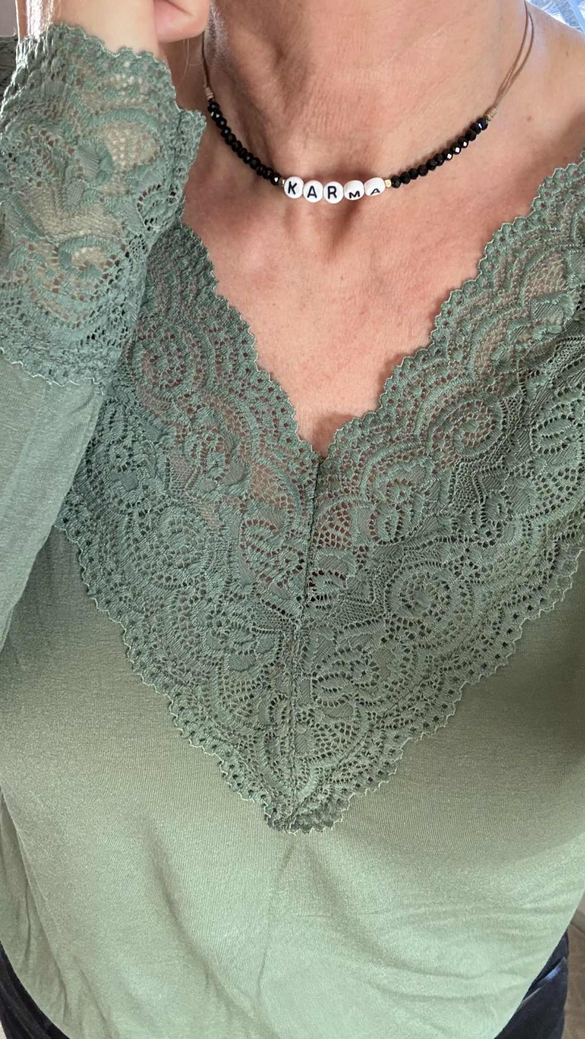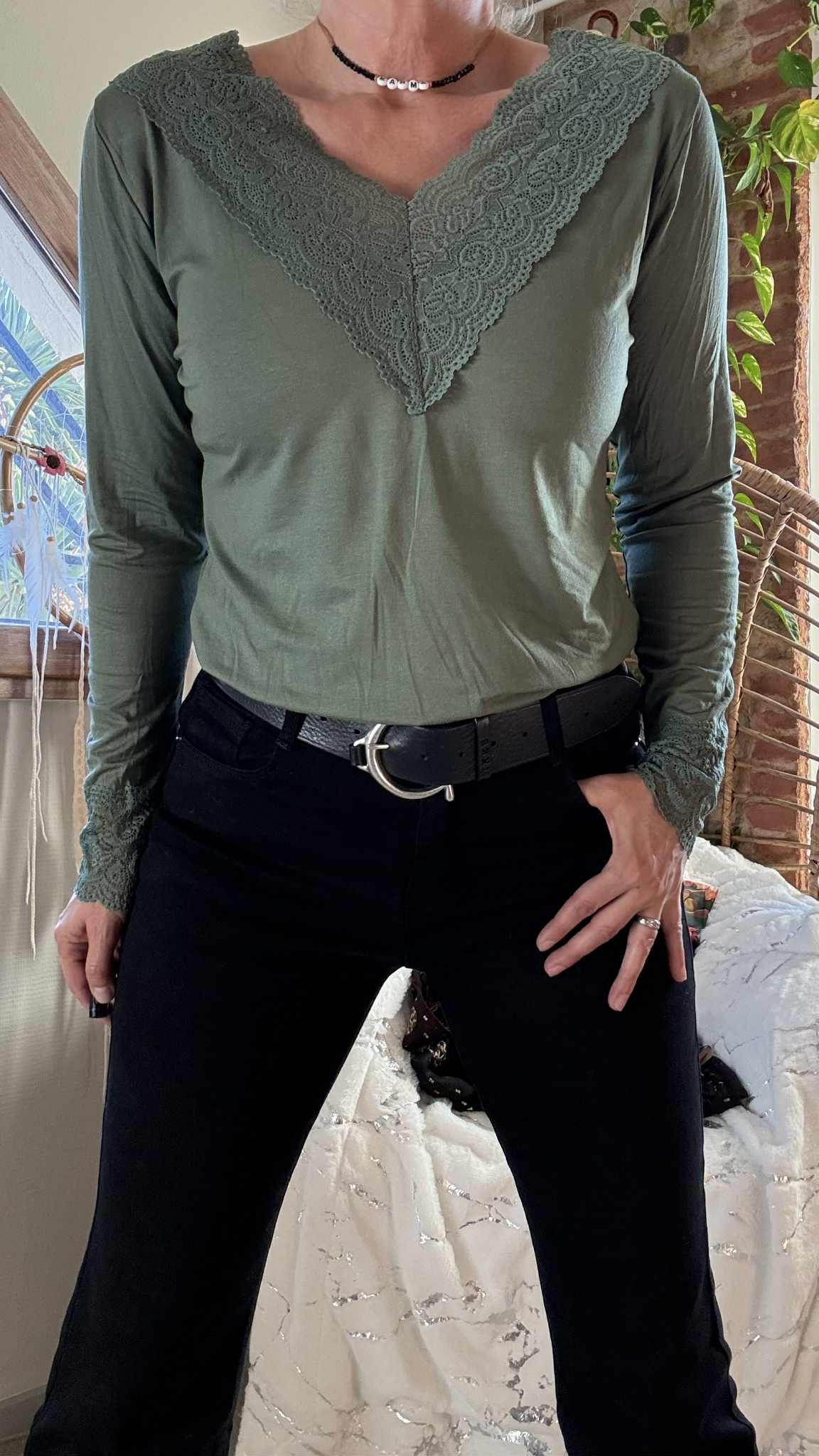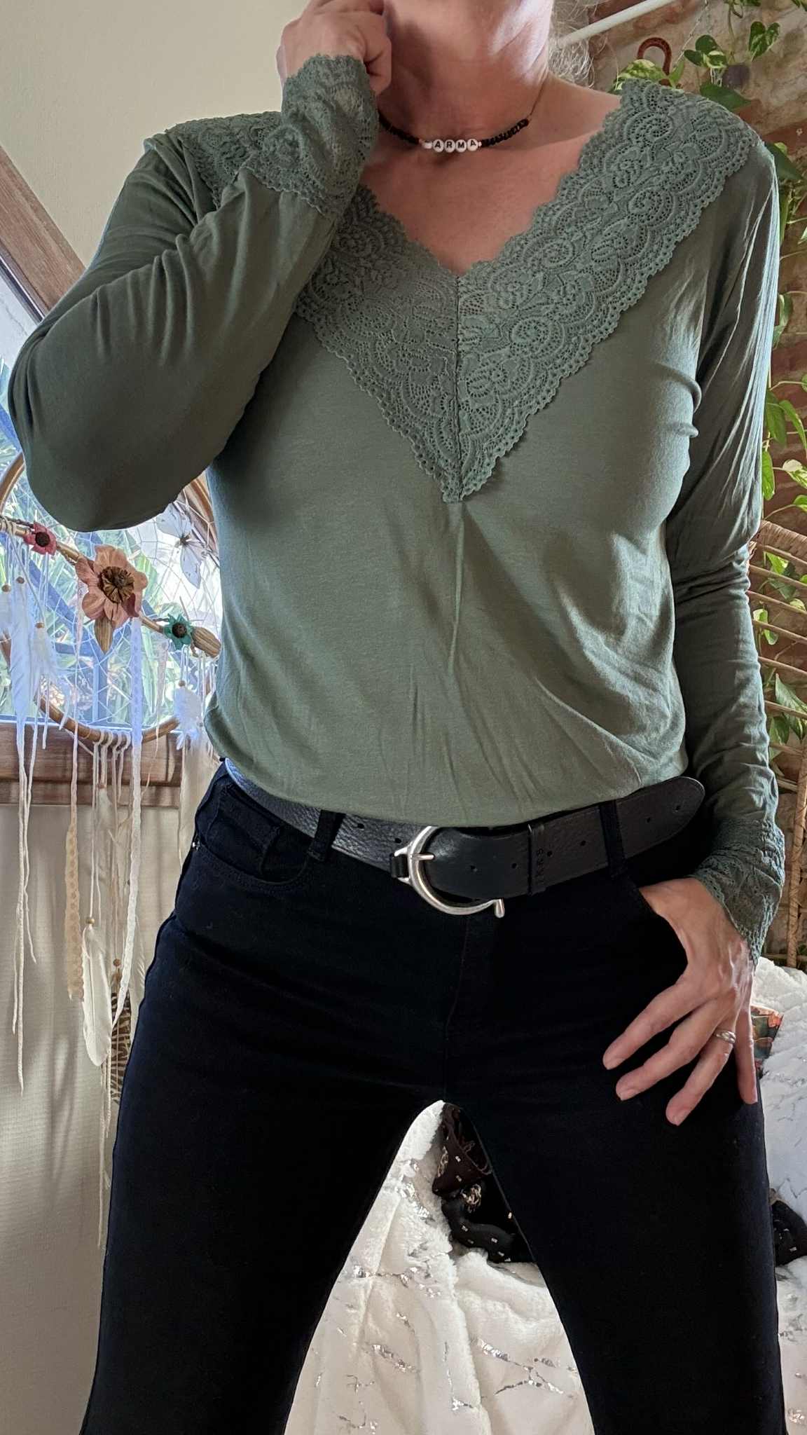 Sous-pull Ariana avec dentelles en V devant et dos. Manches longues avec dentelle au poignet.