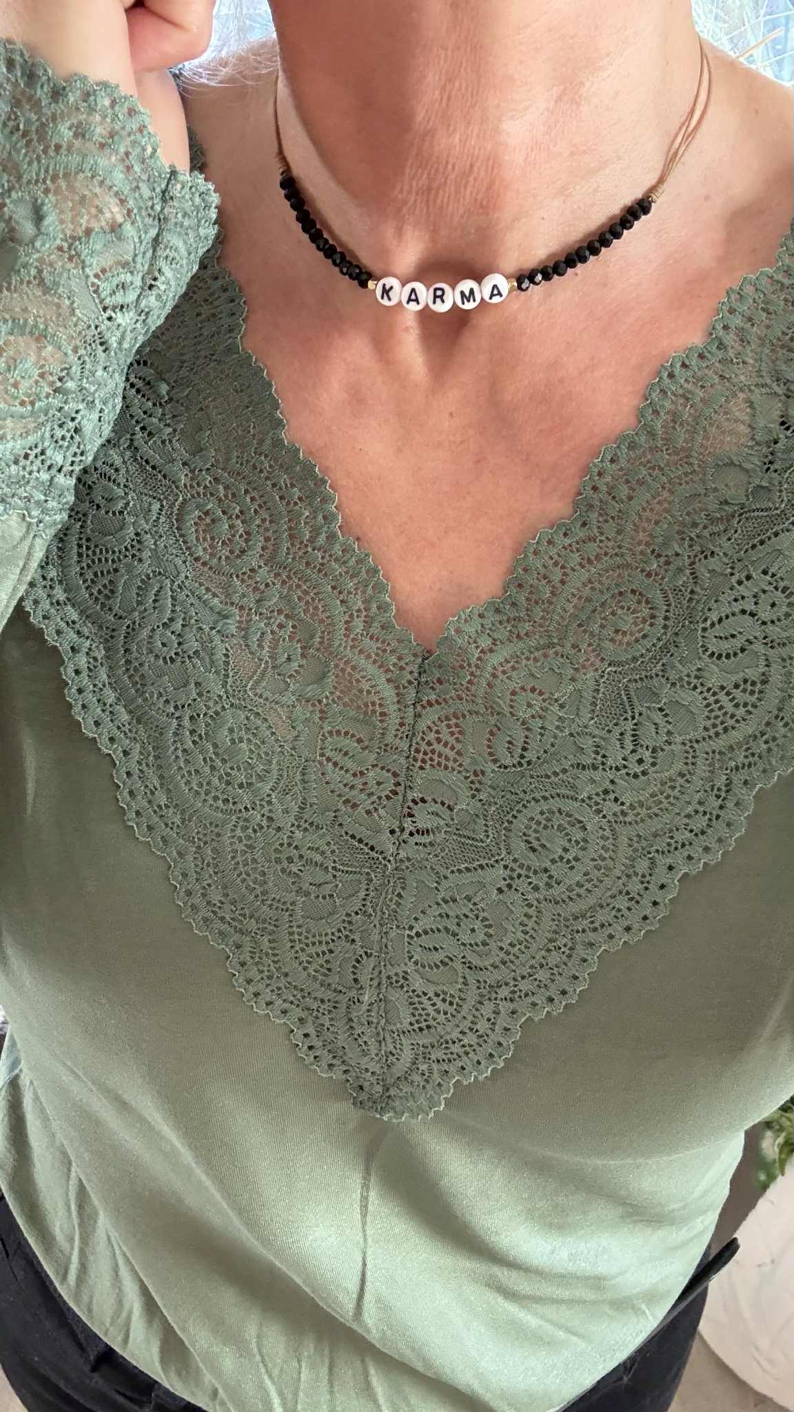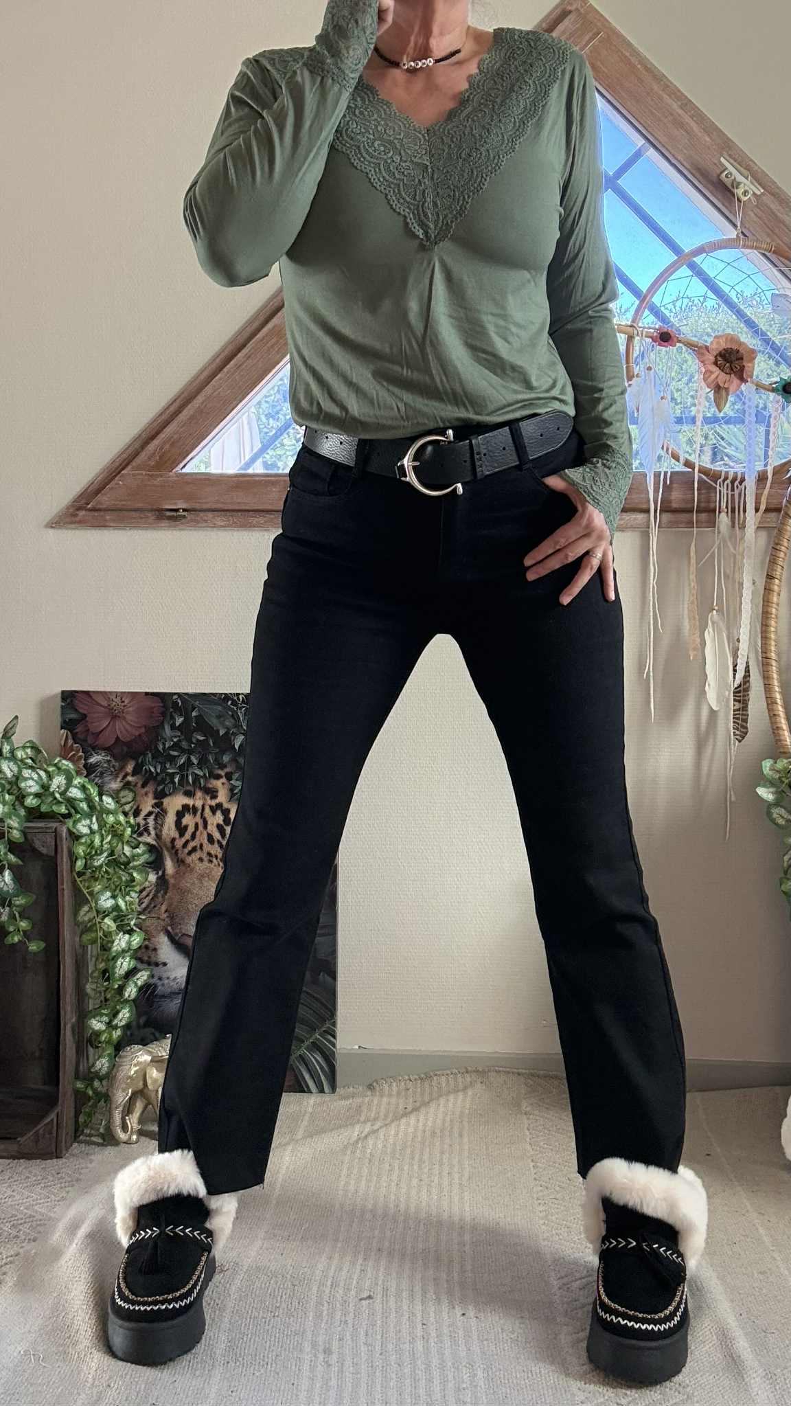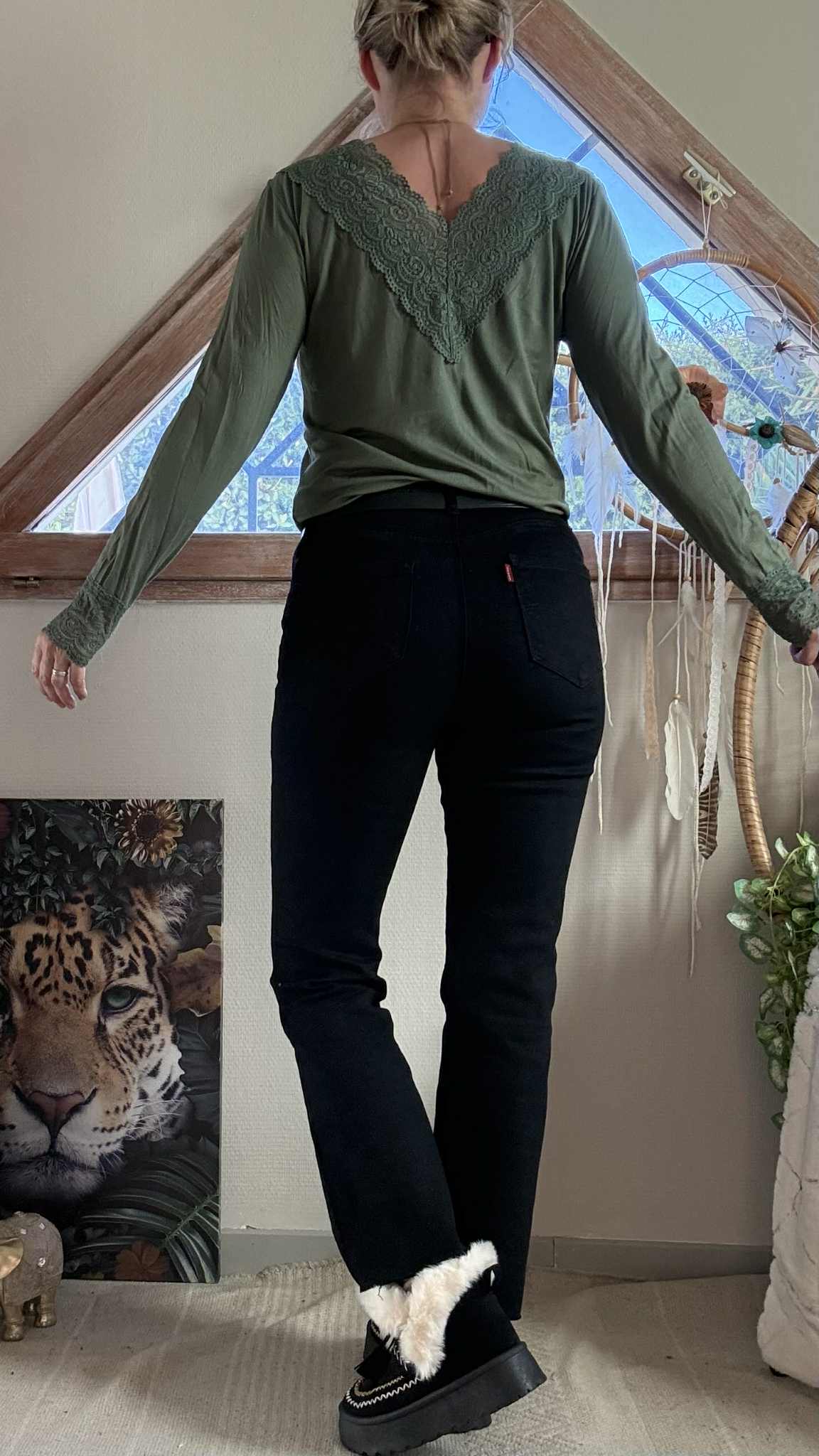 Sous-pull Ariana avec dentelles en V devant et dos. Manches longues avec dentelle au poignet.
