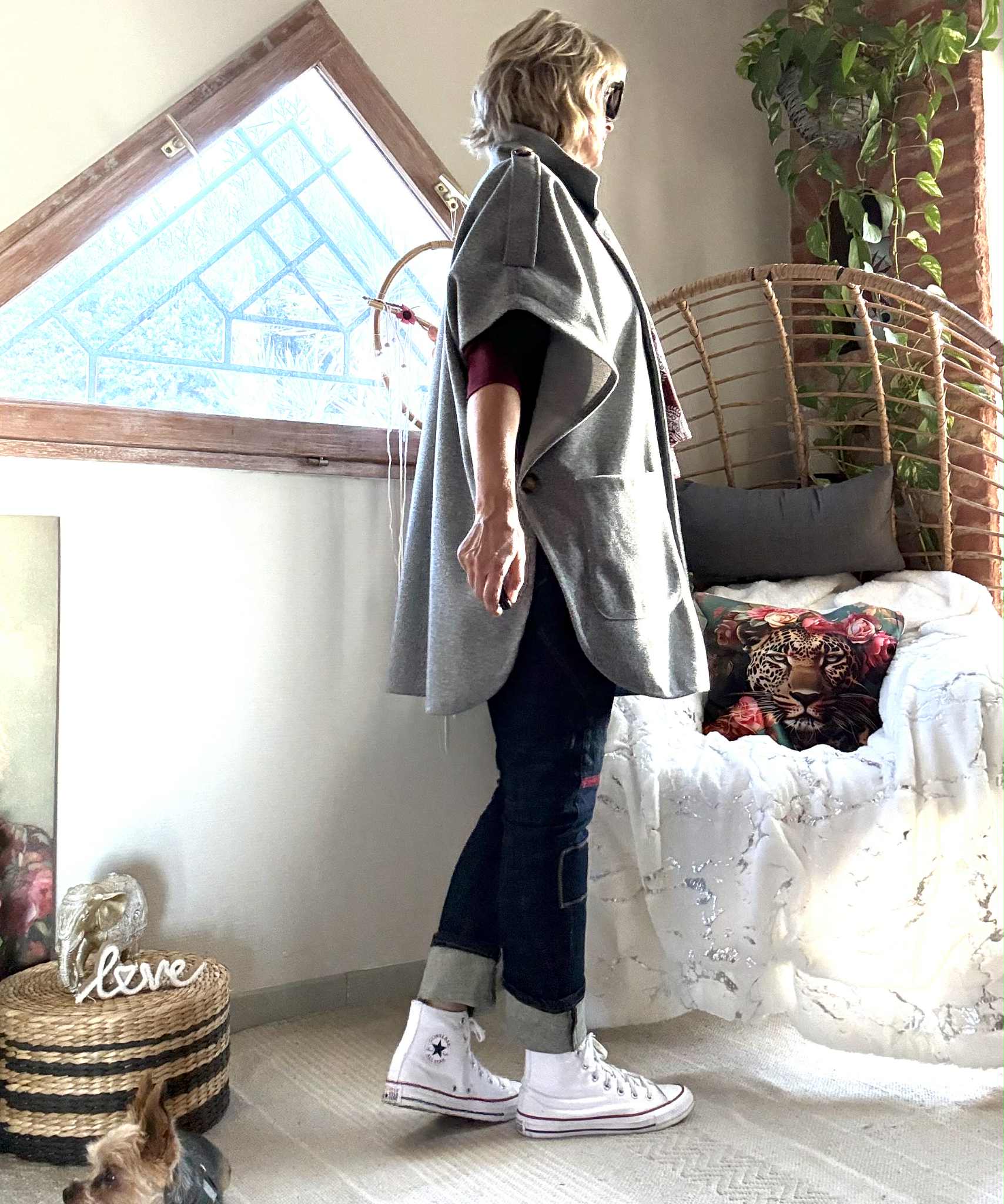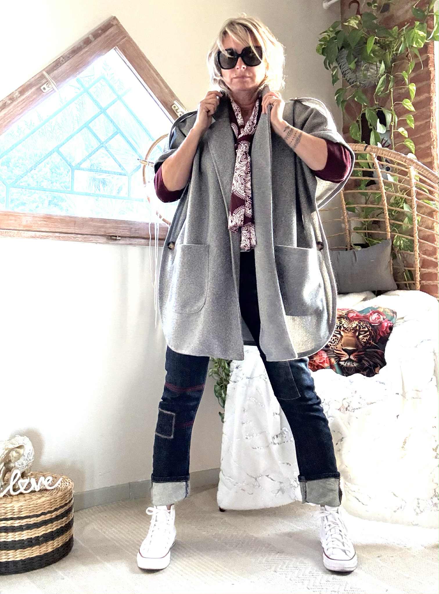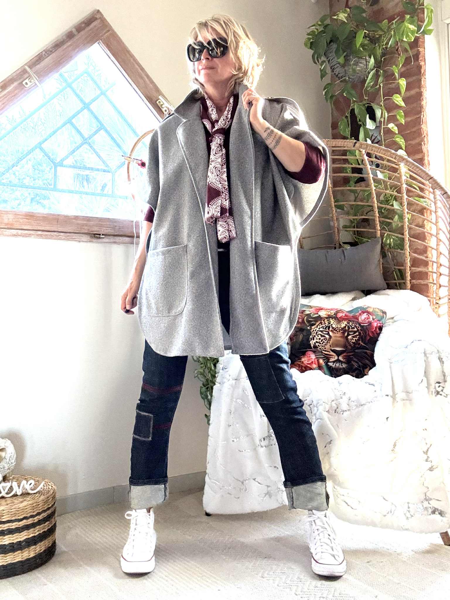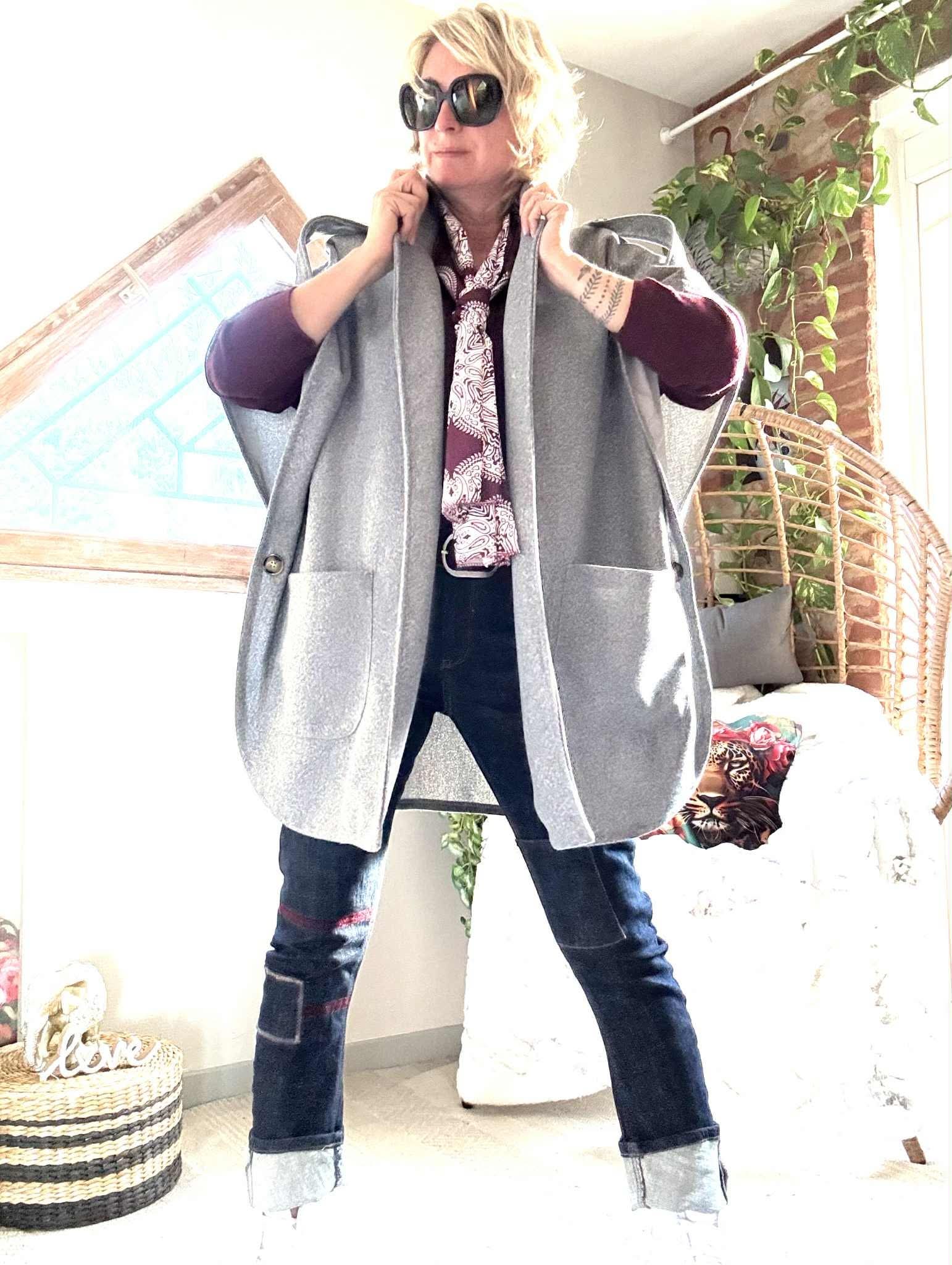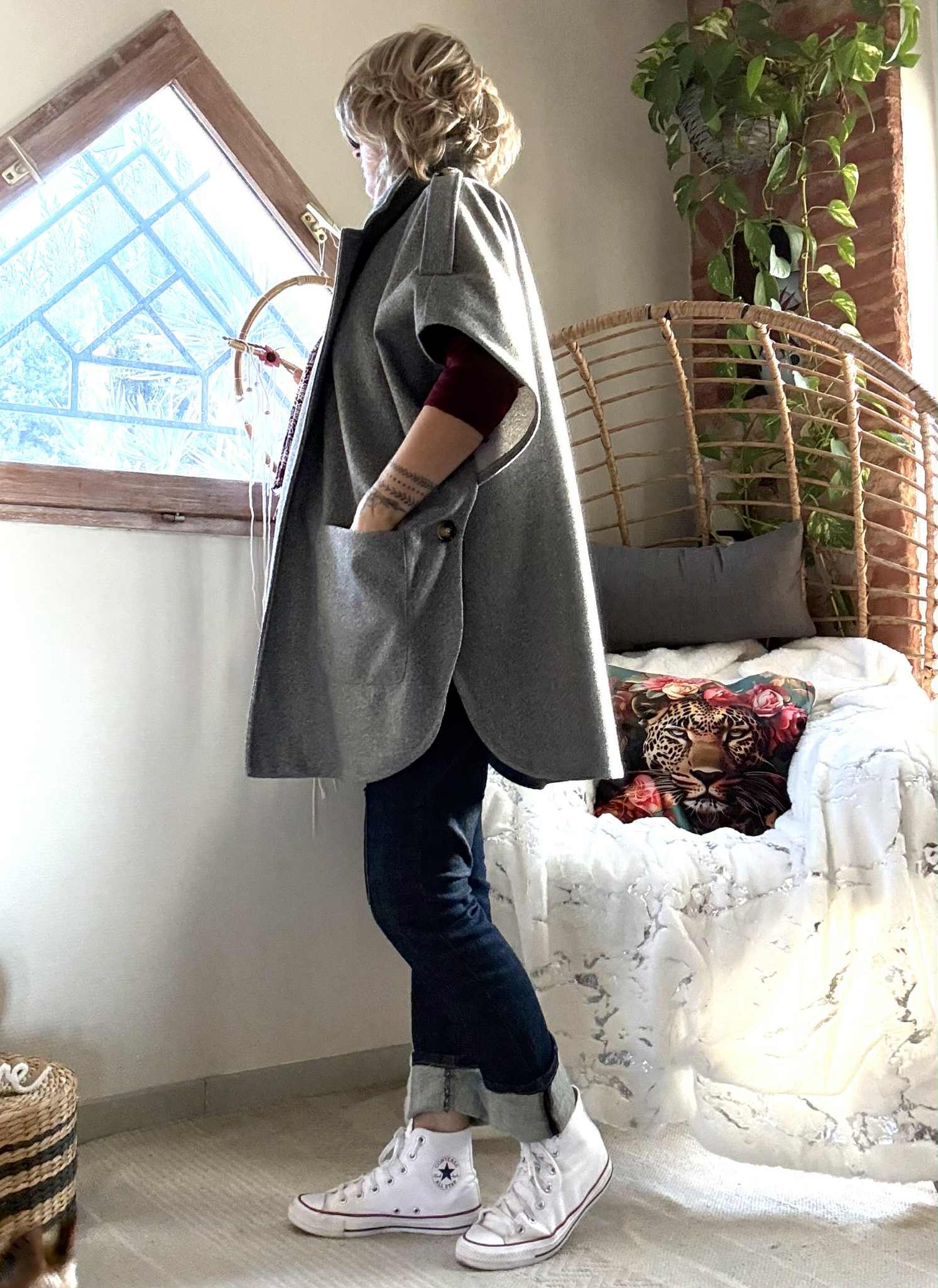 Manteau/ Cape Tina , poches plaquées devant.