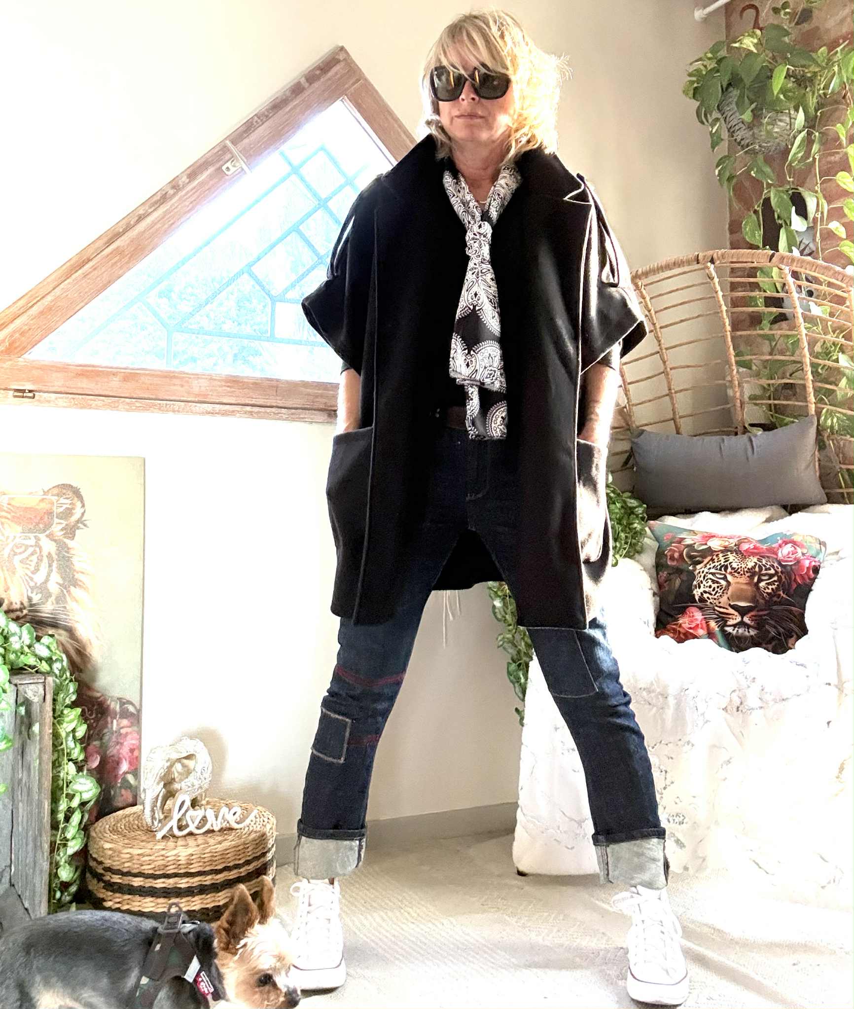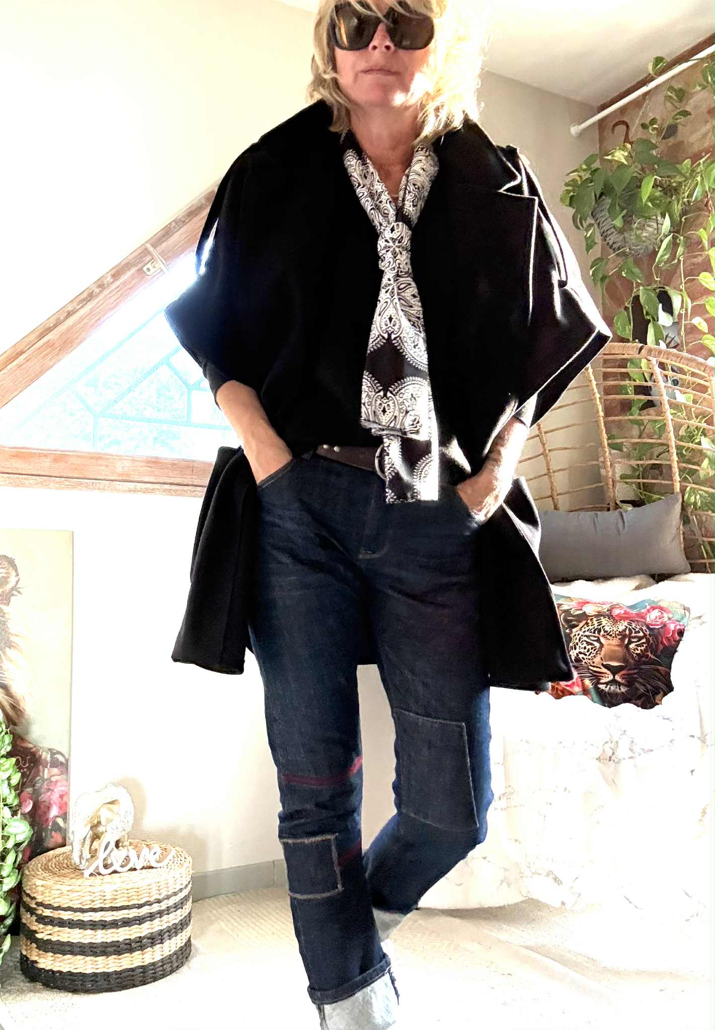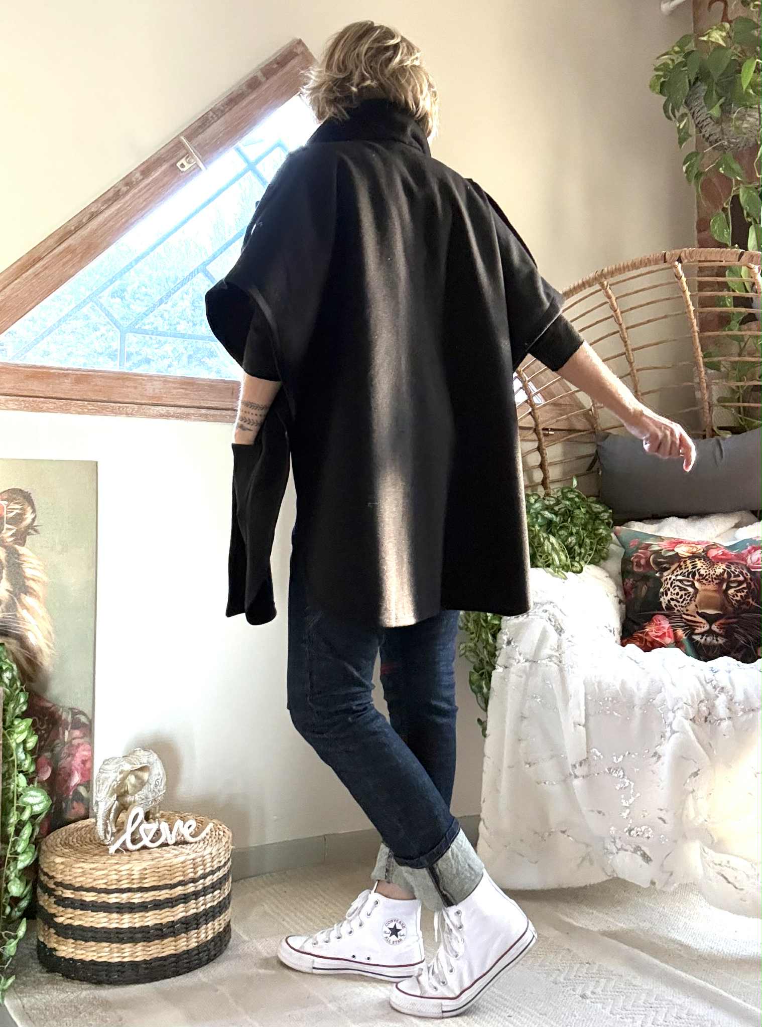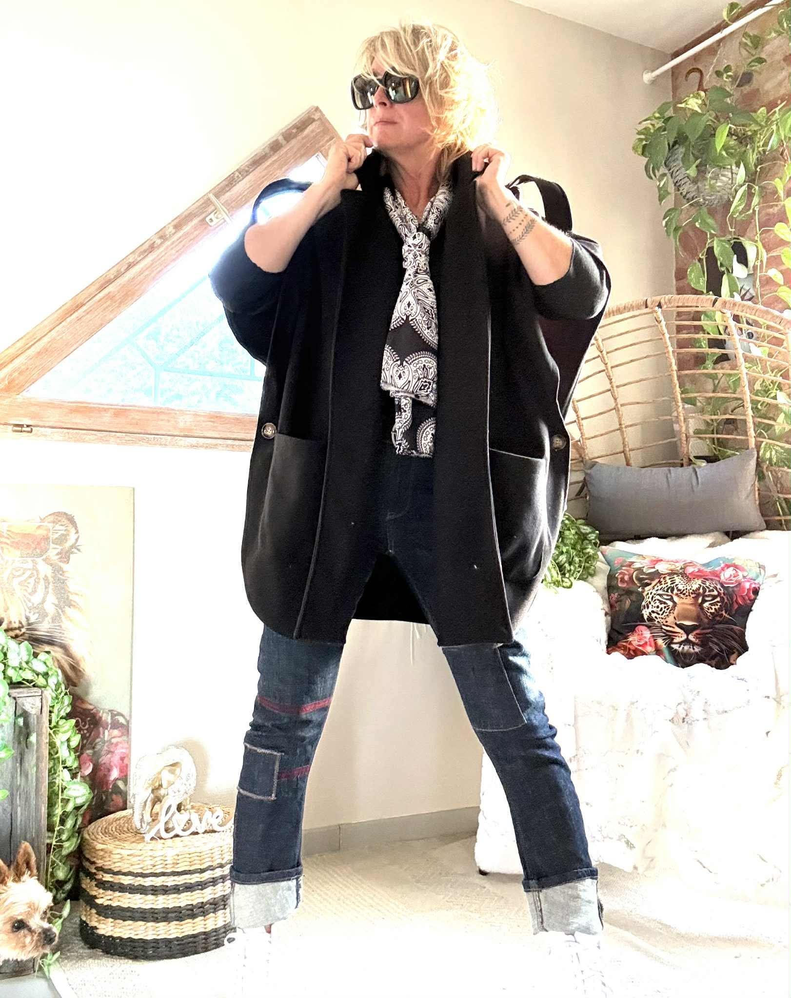 Manteau/ Cape Tina , poches plaquées devant.