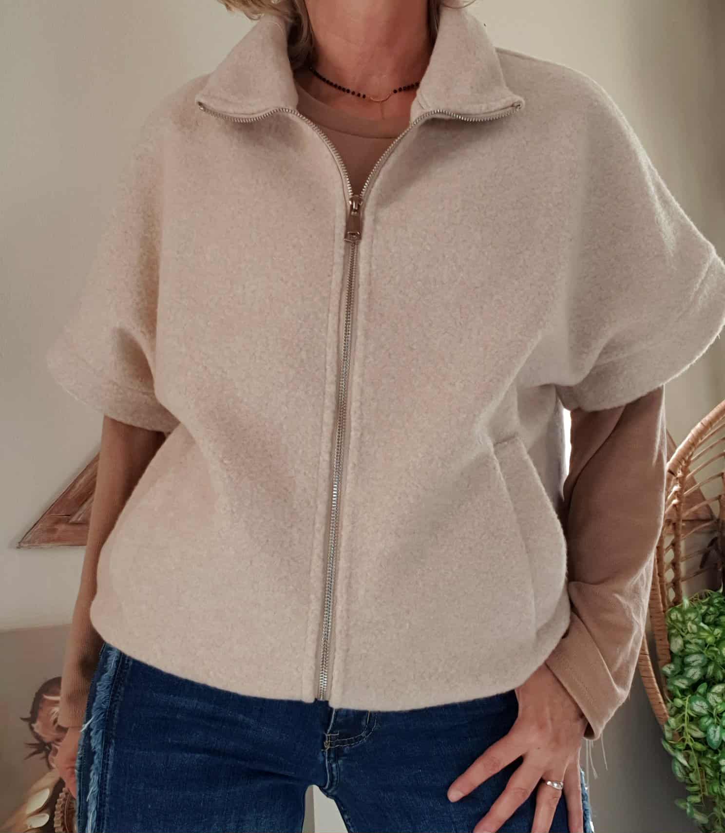 Veste sans manches ecru  fermeture éclair et poches côtés.