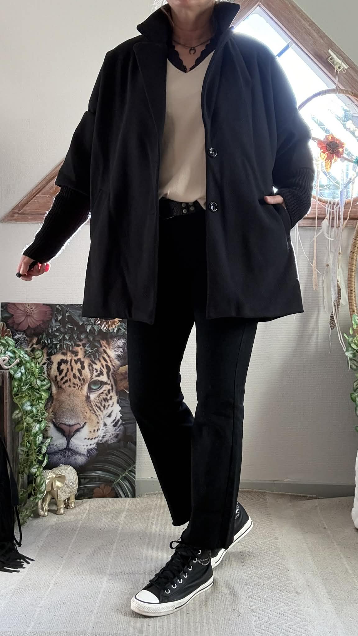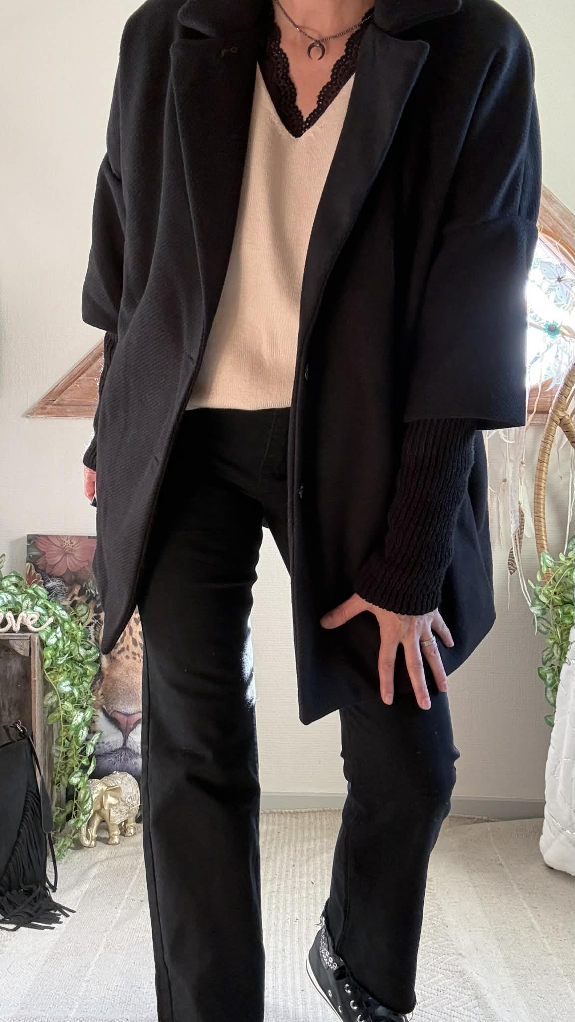 Magnifique manteau doublé Gaston, manches laine. Poches côté se ferme avec 2 boutons devant .